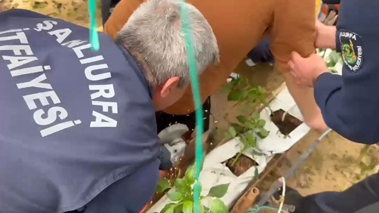Şanlıurfa'nın Eyyübiye ilçesinde serada çalıştığı sırada kalçasına demir saplanan işçi, itfaiye ekiplerinin müdahalesiyle kurtarıldı.