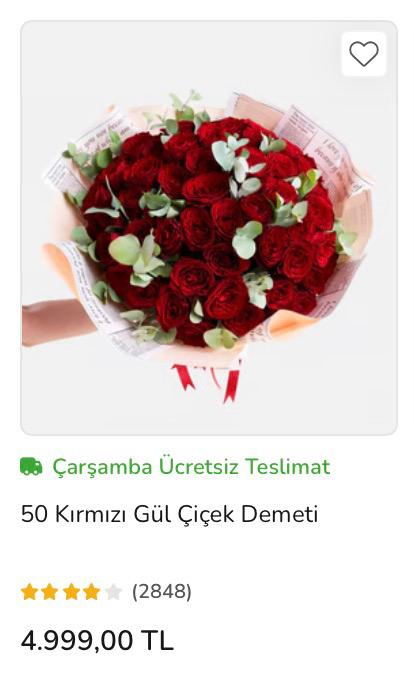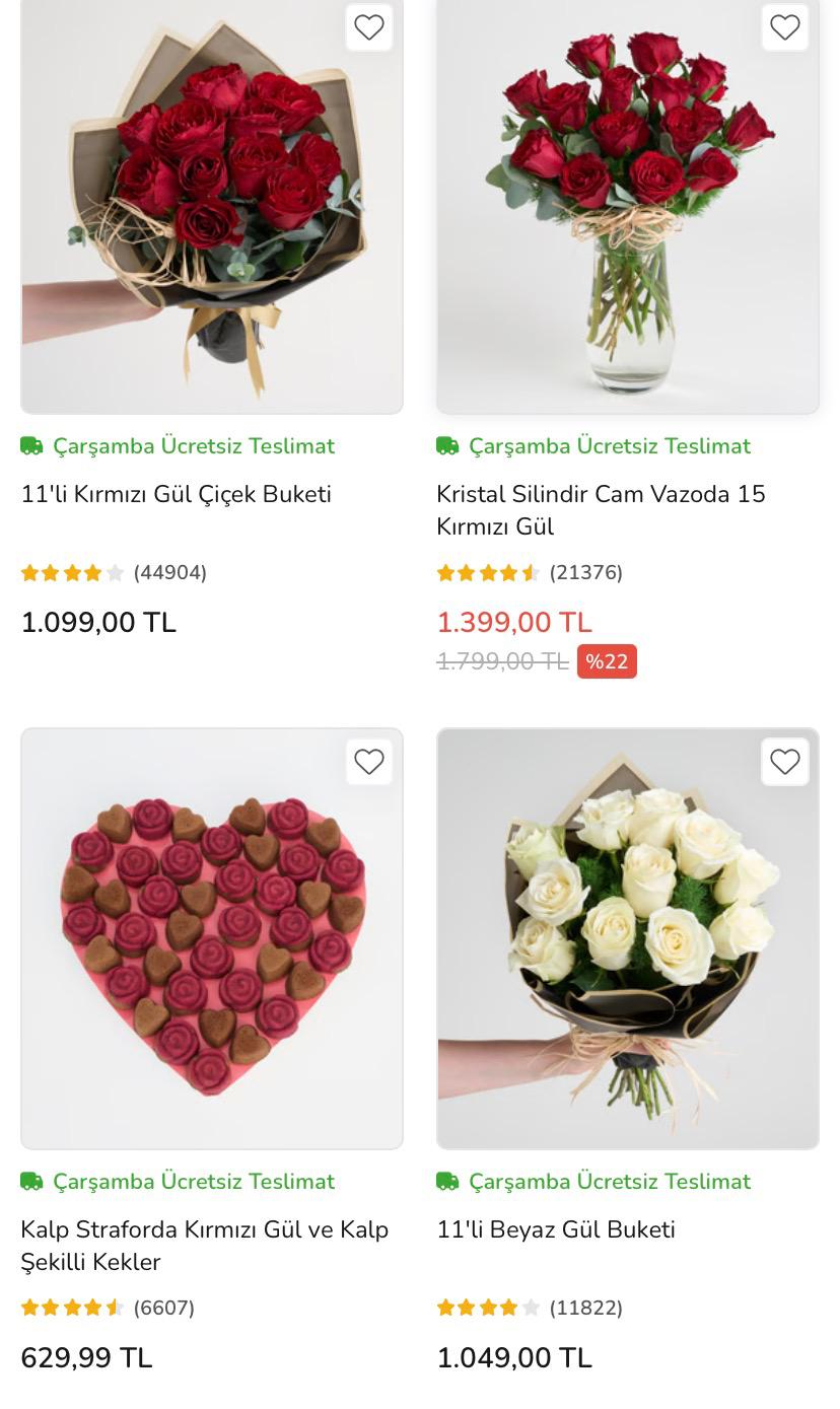 İnternette ortalama buket 1000 TL