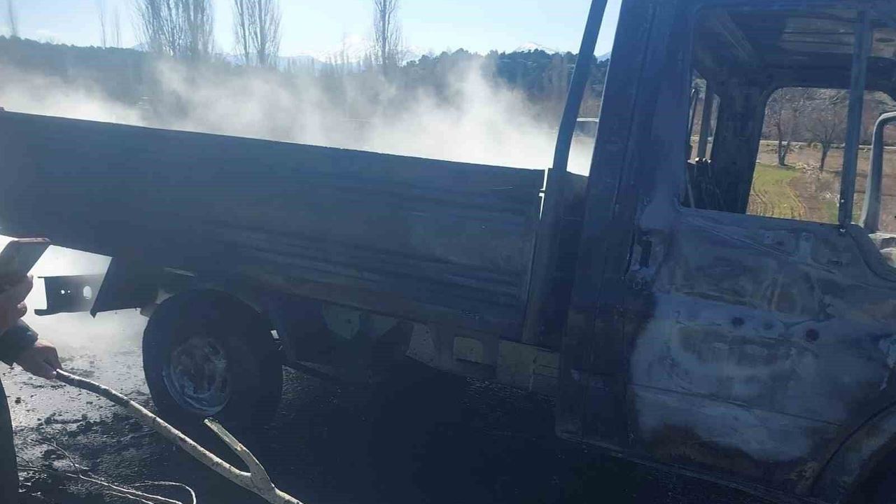Konya'nın Beyşehir ilçesinde seyir halindeki bir kamyonet çıkan yangında alevlere teslim oldu. İtfaiye ekiplerinin müdahalesiyle söndürülen yangında araç kullanılamaz hale geldi.
