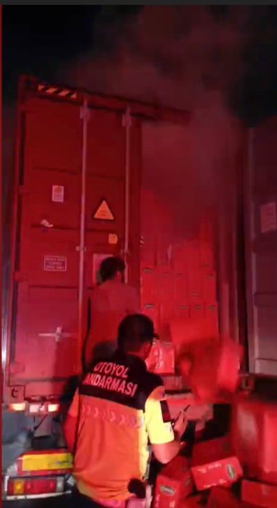 Aracını emniyet şeridine çeken sürücünün durumu bildirilmesi üzerine olay yerine itfaiye ve jandarma ekipleri sevk edildi.