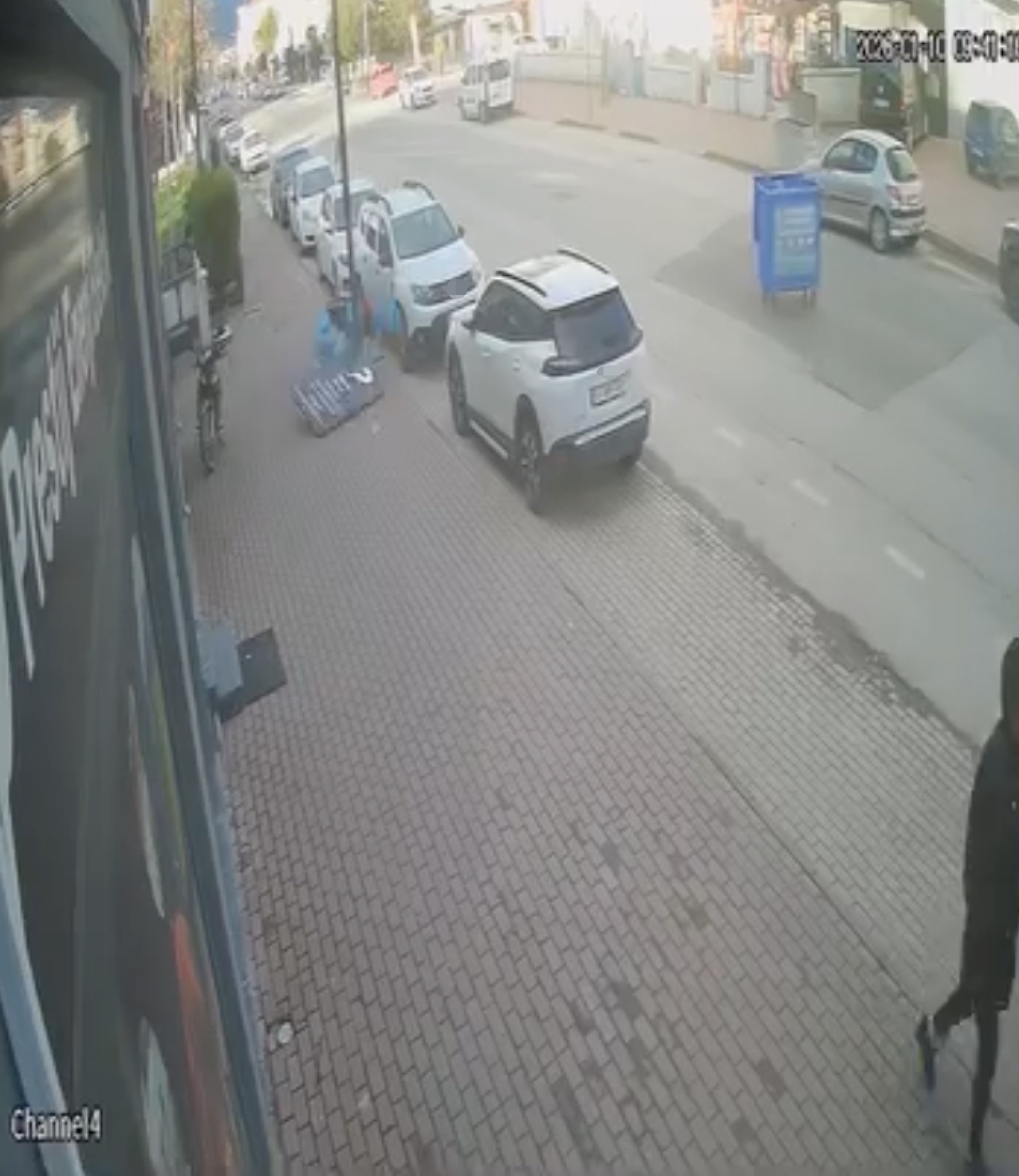 O sırada kaldırımda yürüyen bir kişi, tabelanın düşeceğini fark ederek hızla bölgeden uzaklaştı ve muhtemel bir kazadan son anda kurtuldu.