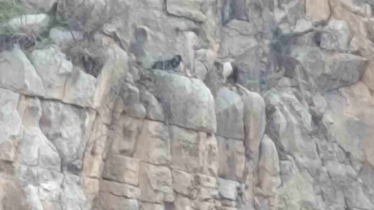 Siirt'in Eruh ilçesinde kayalıklarda 4 gündür mahsur kalan 2 keçi kurtarıldı.