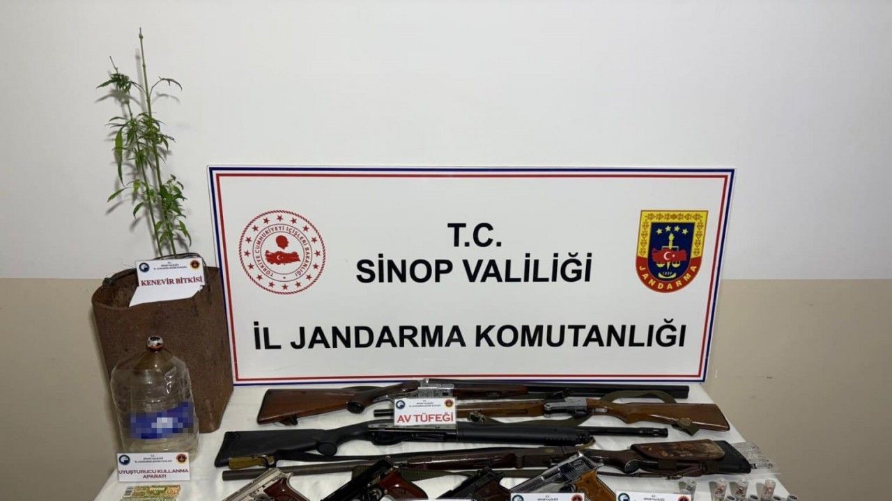 Sinop İl Jandarma Komutanlığı ekiplerince uyuşturucu madde satıcılarına yönelik yürütülen çalışmalar kapsamında Erfelek ilçesinde düzenlenen operasyonda çeşitli miktarlarda uyuşturucu madde, silah ve mühimmat ele geçirildi.