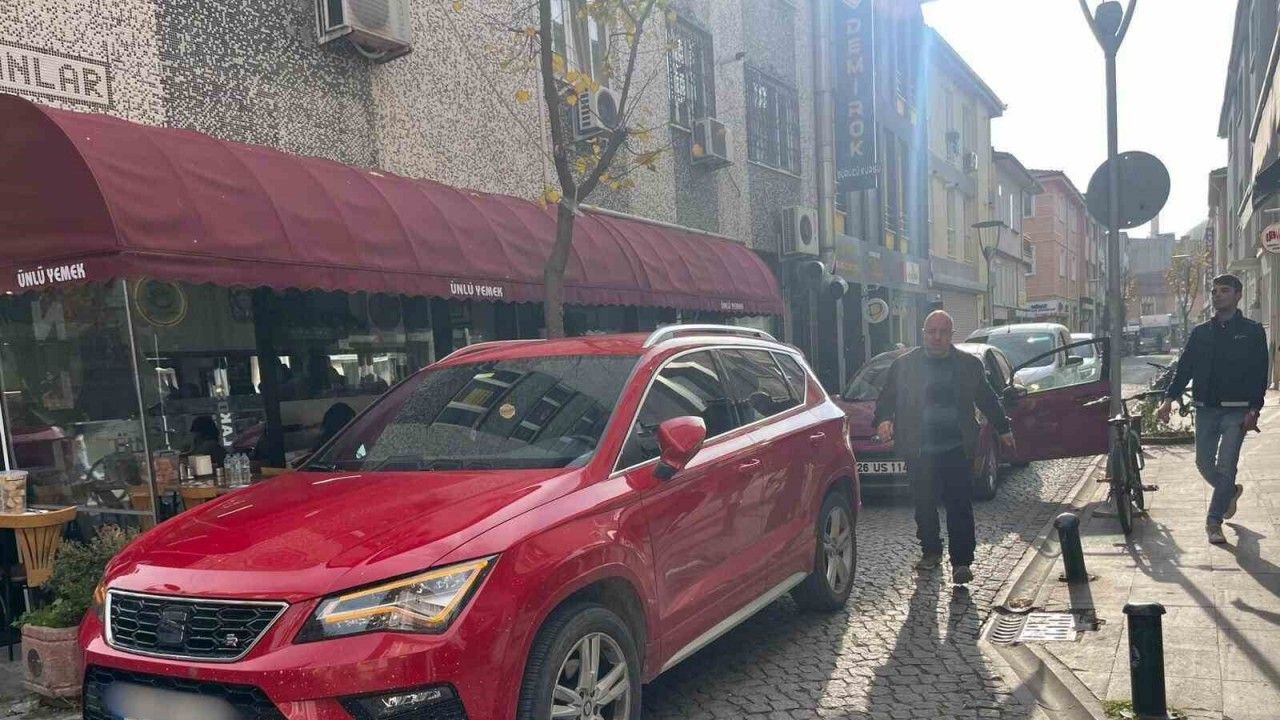 Eskişehir’de bir ara sokağın ortasına otomobilini bırakıp işlerini halletmeye giden sürücünün rahatlığı şaşırtırken, bahse konu yolda araç kuyruğu oluştu.