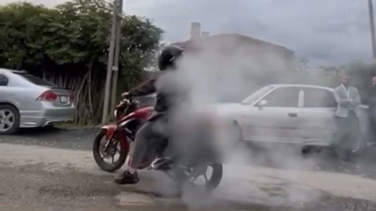 Samsun Çarşamba ilçesinde motosikleti ile durduğu yerde duman çıkartan sürücü görüntüleri sosyal medyada paylaşınca polis tarafından tespit edilerek ceza uygulandı.