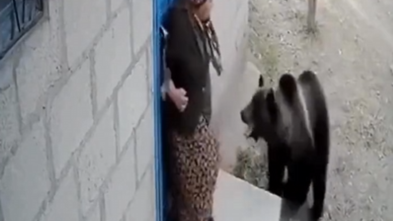 Sivas'ta bir ayı bahçeye girerek kadına saldırmaya çalıştı.