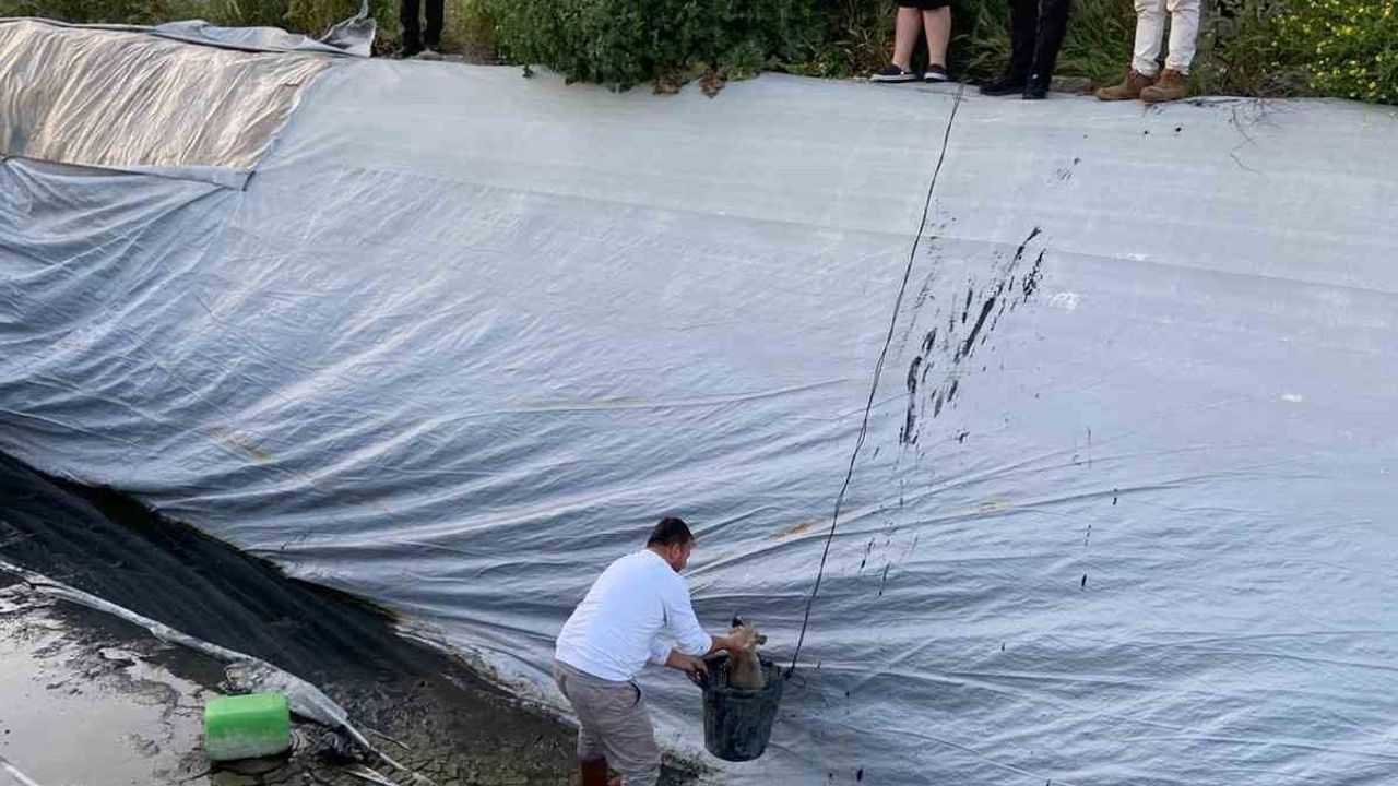 Aydın'ın Sultanhisar ilçesinde çilek sulama havuzuna düşen 5 yavru köpek, belediye ekiplerinin zamanında müdahalesiyle kurtarıldı.