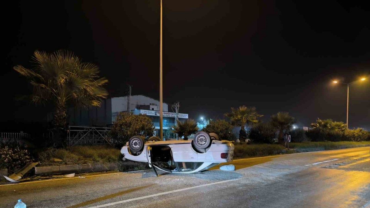 Hatay’da takla atarak ters dönen otomobilin sürücüsü yaralandı.