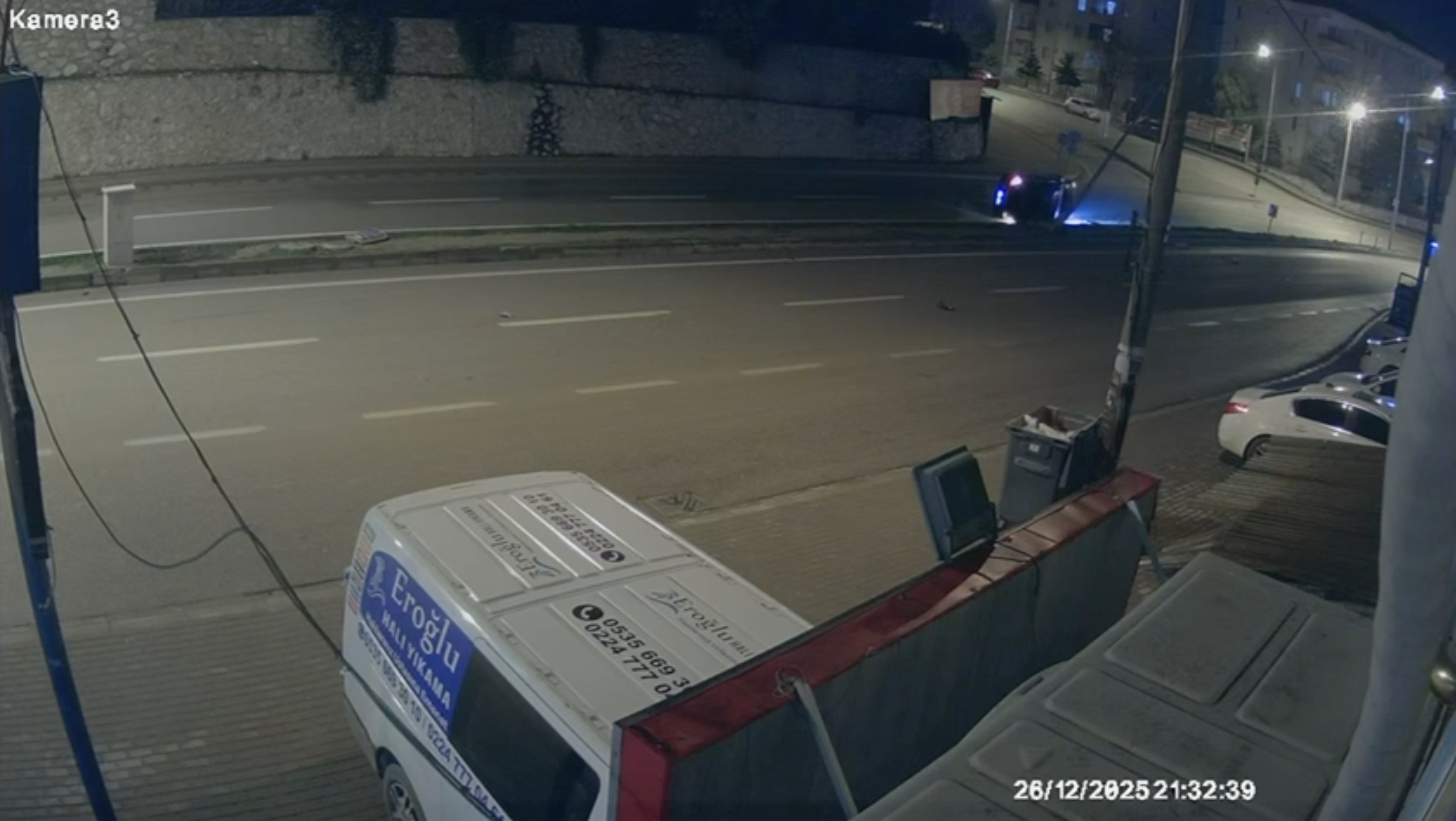 Kaza, saat 22.00 sıralarında İnegöl-Alanyurt yolunda meydana geldi. Alanyurt'tan İnegöl merkeze doğru seyir halinde olan, ehliyeti kısa süre önce aldığı öğrenilen Mustafa Can S. (18) yönetimindeki 16 AZ 385 plakalı otomobil, yağışın etkisiyle kayganlaşan yolda sürücüsünün kontrolünden çıktı. Savrulan araç takla atarak refüjde bulunan aydınlatma direğine çarptı ve yan yattı. Yaşanan feci kaza, olay yerini gören bir iş yerine ait güvenlik kamerası tarafından saniye saniye kaydedildi. Görüntülerde otomobilin kontrolden çıkarak savrulduğu, ardından takla atıp direğe çarptığı anlar net şekilde yer aldı.