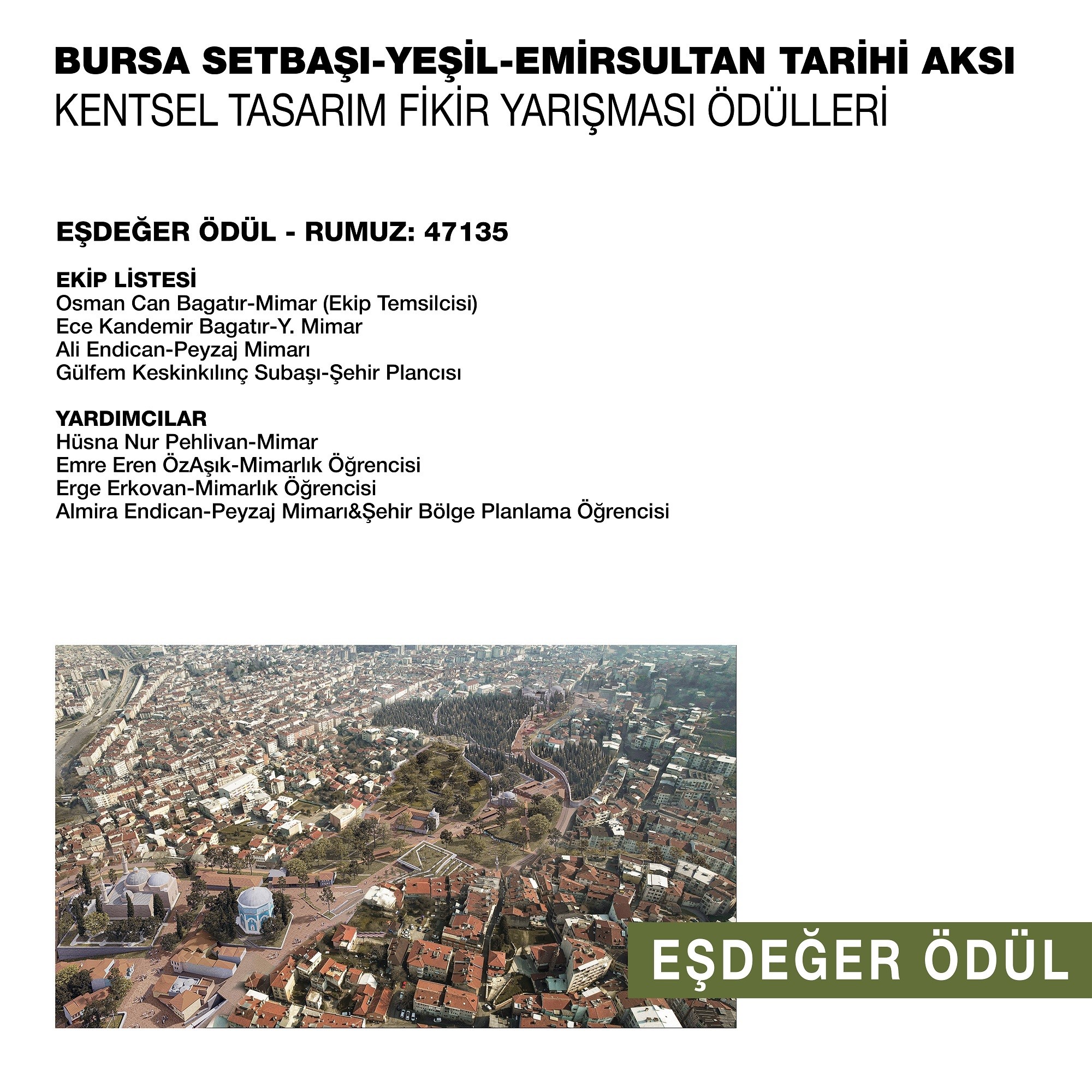 Proje fikirlerinden 3 tanesi ‘Eşdeğer’ ödüle, 3 tanesi ‘Eşdeğer Mansiyon’ ödülüne, 5 tanesi ise ‘Satın Alma’ ödülüne layık bulundu. Yarışma sonucunda ortaya çıkan fikirler, Yıldırım Belediyesi tarafından yapılacak olan Koruma Amaçlı Uygulama İmar Planı için bir çerçeve ve zemin oluşturacak.