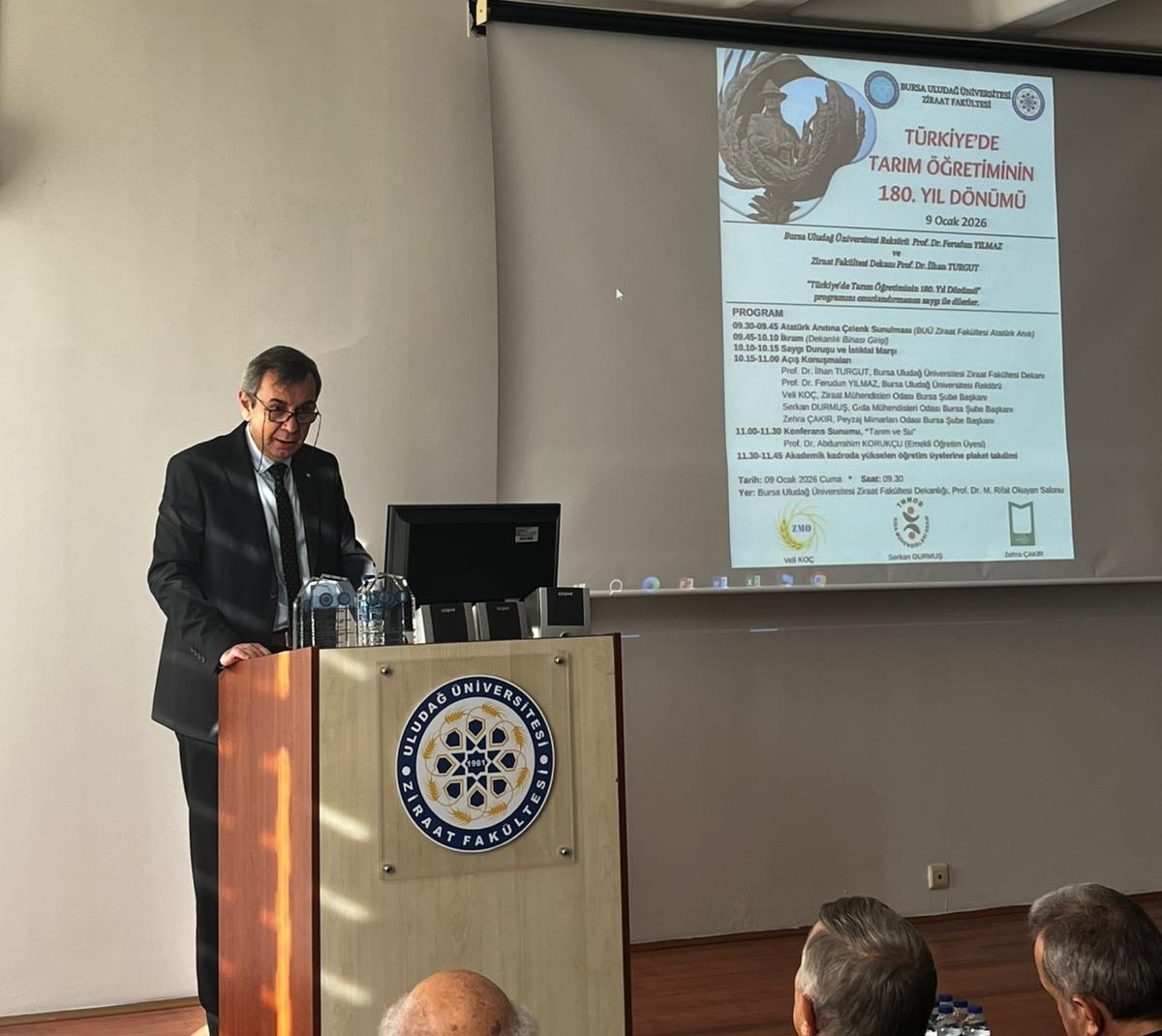 Türkiye’de tarımsal eğitim ve öğretimin 10 Ocak 1846’da İstanbul Yeşilköy’de Ayamama Ziraat Mektebi’nde başlamasının 180. yıl dönümü, Bursa Uludağ Üniversitesi’nde düzenlenen törenle kutlandı. Törende Bursa Ziraat Mühendisleri Odası Başkanı Veli Koç konuşma yaptı.