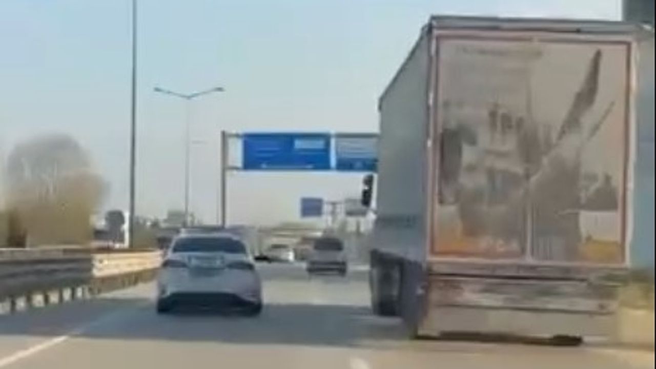 Bursa’nın İnegöl ilçesinde dur ihtarına uymayan TIR’ın sürücüsü bölge trafik ekipleri tarafından silah doğrultarak durduruldu. Kovalamaca başka bir sürücünün amatör kamerasına yansıdı.