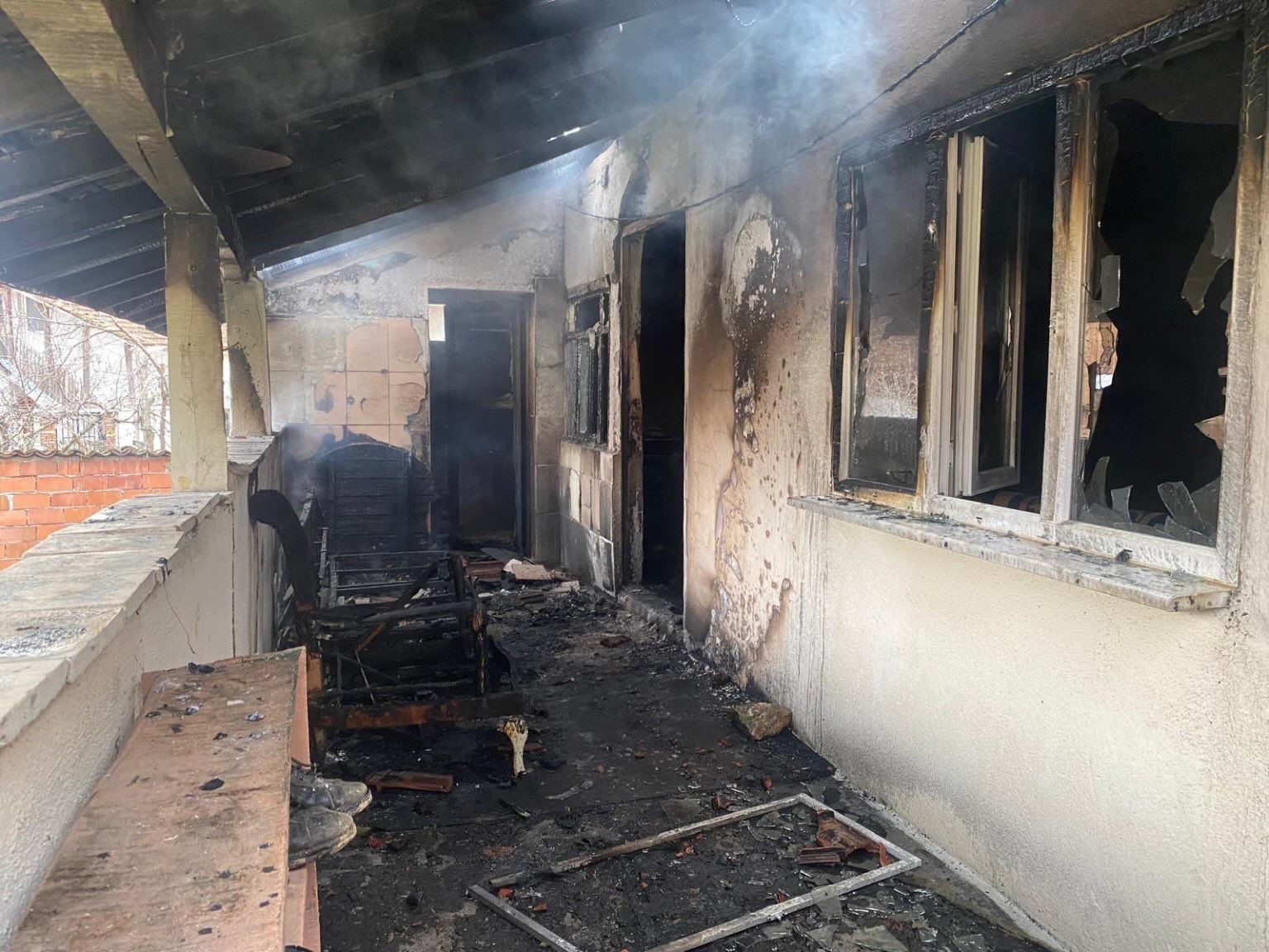 Yangın sonucu ev kullanılamaz hale gelirken, yangının çıkış sebebi araştırılıyor.