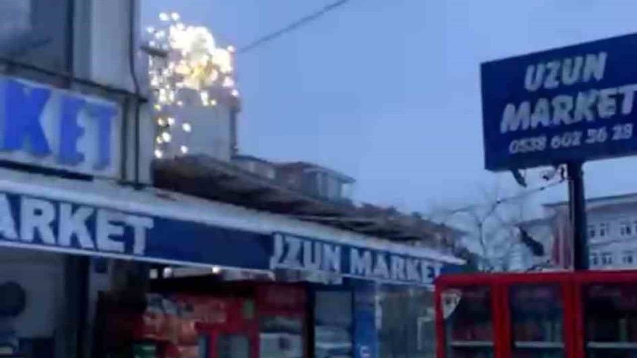 Tekirdağ'ın Çerkezköy ilçesinde elektrik tellerinden çıkan kıvılcımlar paniğe neden oldu.