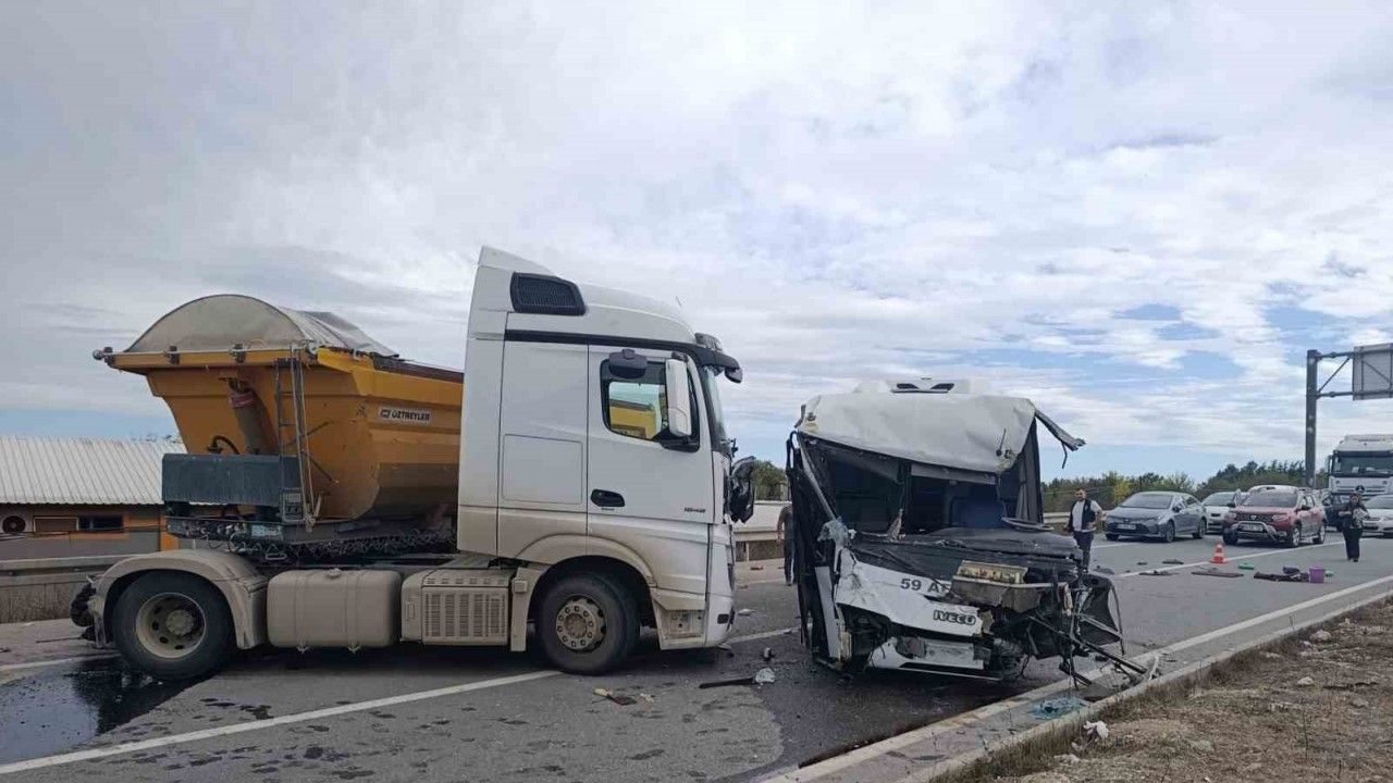 Tekirdağ’ın Saray ilçesinde minibüs ile silobas dorse tırın çarpışması sonucu meydana gelen kazada minibüs sürücüsü ağır yaralandı.