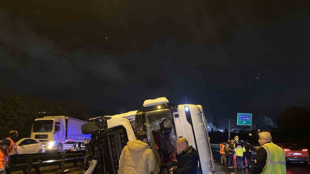 Kaza, gece saatlerinde meydana geldi. Tamer C. yönetimindeki 64 HH 286 plakalı granül yüklü tır, otoyolun Dilovası geçişi İstanbul istikameti Dilovası rampası mevkiinde sürücüsünün direksiyon hakimiyetini kaybetmesiyle kontrolden çıkarak devrildi. İhbar üzerine kaza yerine jandarma, itfaiye ve sağlık ekipleri sevk edildi. Kazada yaralanan sürücü, sağlık ekiplerinin olay yerindeki ilk müdahalesinin ardından ambulansla Fatih Devlet Hastanesi’ne kaldırıldı.