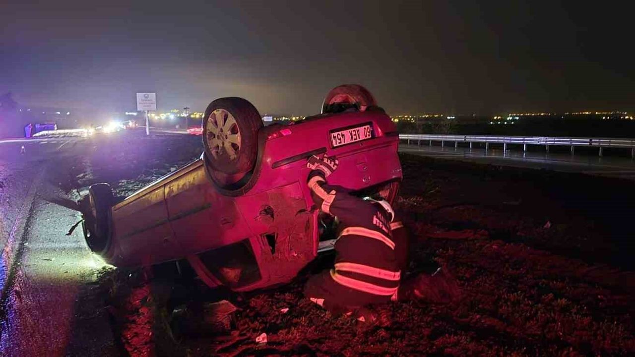 Hatay'da sürücüsünün kontrolünü kaybetmesiyle takla atarak ters dönen otomobildeki 2 kişi yaralandı.
