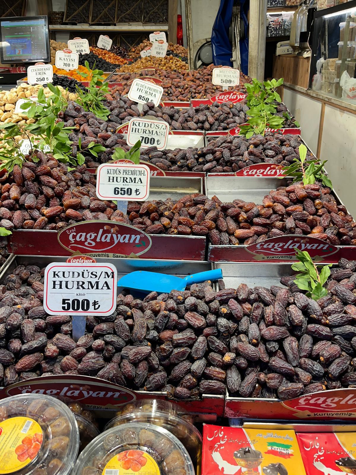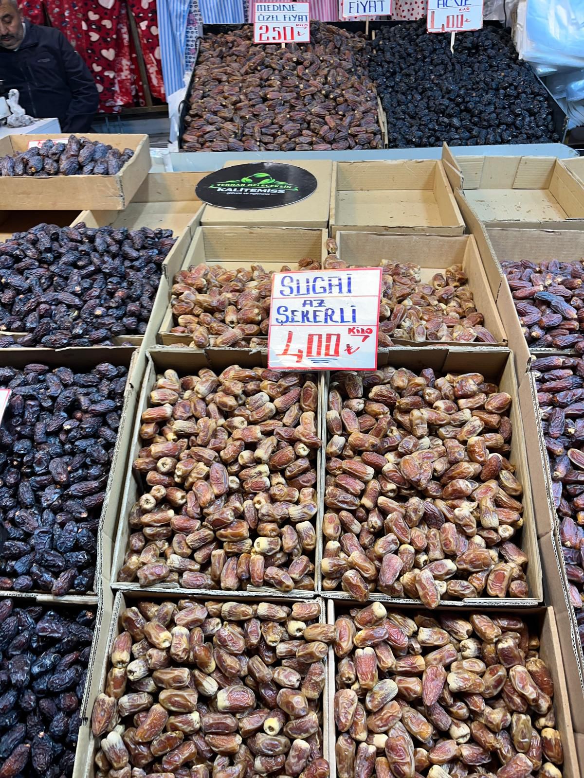 Bursa Tuz Pazarı’nda hurma fiyatları cinsine ve iriliğine göre değişiklik gösteriyor. Bu yıl tezgâhlardaki bazı hurma çeşitleri ve fiyatları ise şöyle: