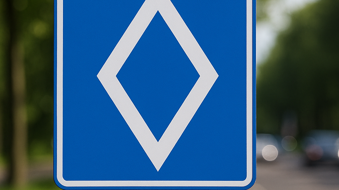 Mavi zemin üzerine beyaz baklava dilimi (elmas) figürüyle gösterilen bu yeni trafik levhası, sadece belirli araç gruplarının kullanabileceği özel şeritlerin ayrıldığını net bir şekilde belirtiyor.