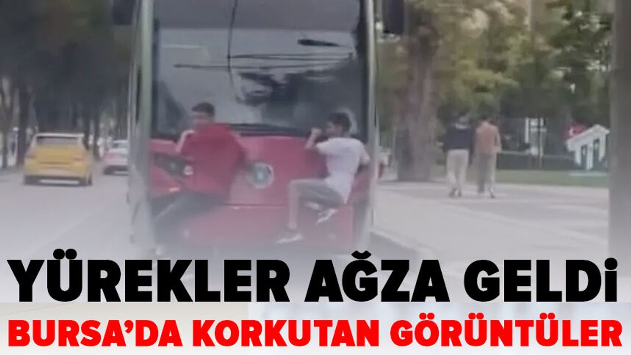 Bursa'nın Osmangazi ilçesi Çekirge Mahallesi Darmstadt Caddesi üzerinde seyreden tramvayın arkasına tutunan 3 çocuk, hem kendi canlarını hem de trafikteki diğer sürücüleri tehlikeye attı. O anlar cep telefonu kamerasına yansıdı.