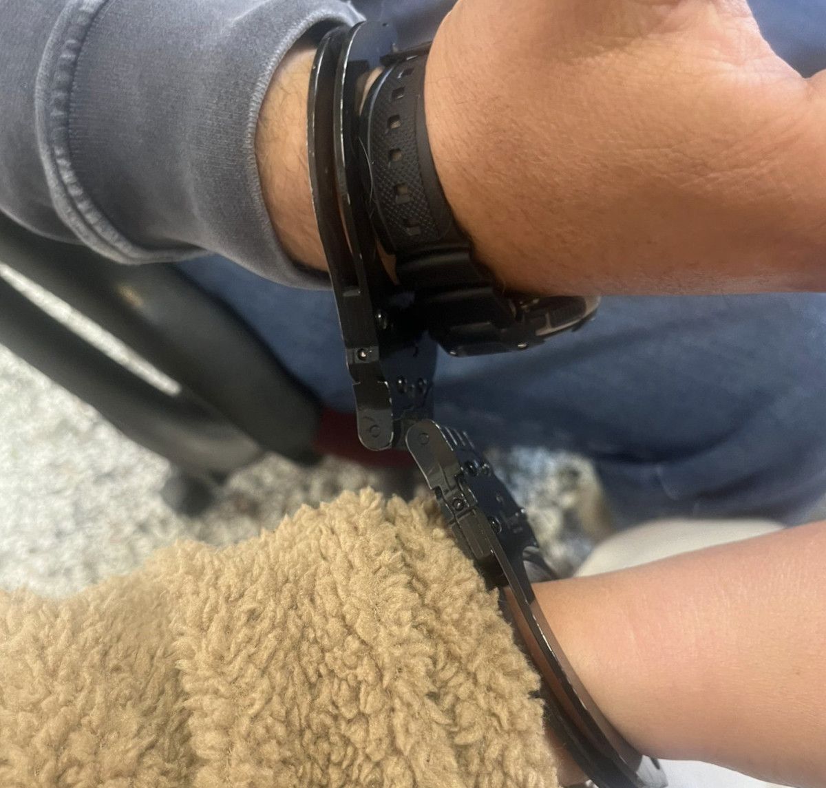Daha sonra da gümrük binasına çağırdıkları polisler eşliğinde bizi kelepçeleyerek, o sırada hudut kapısından Midilli Adası'na giriş yapan Türk vatandaşlarının önünde rencide edici şekilde bizi Midilli'deki karakola götürdüler. Yaklaşık bir gün boyunca karakolda nezarethanede kaldık. Nezarethane şartları çok kötüydü. Çok soğuktu.