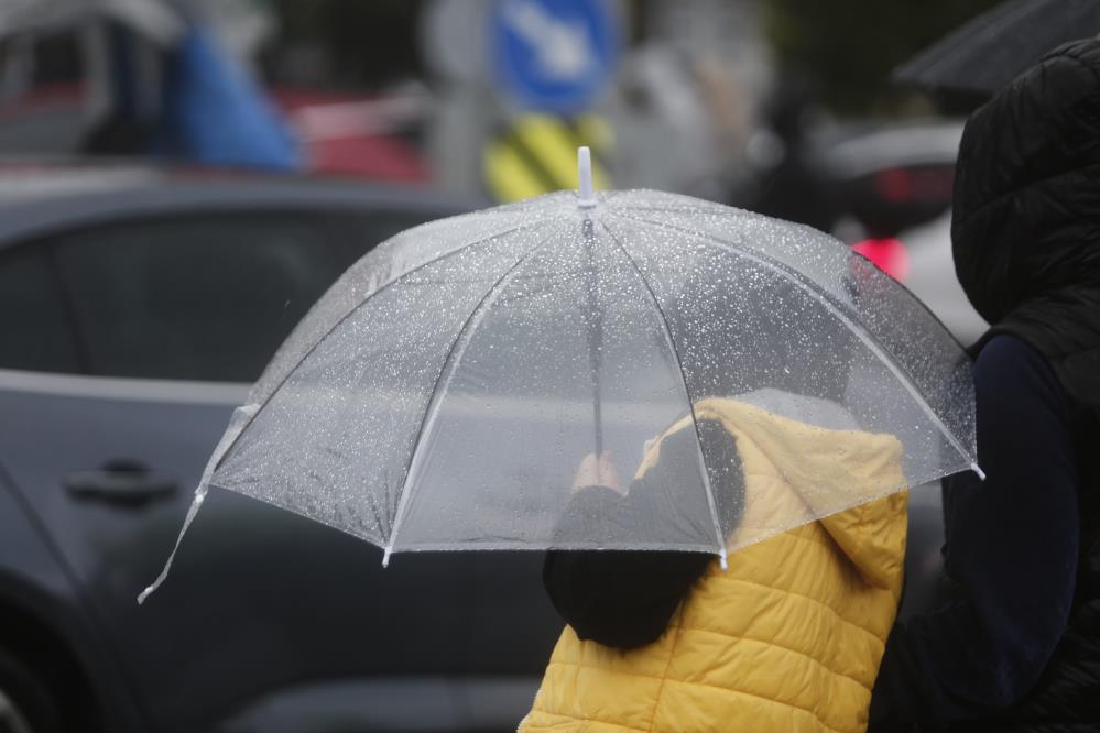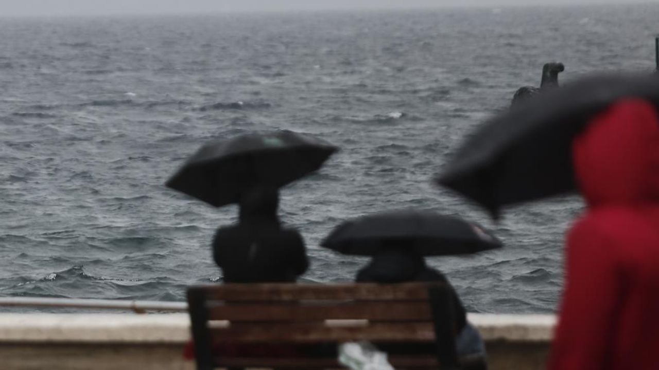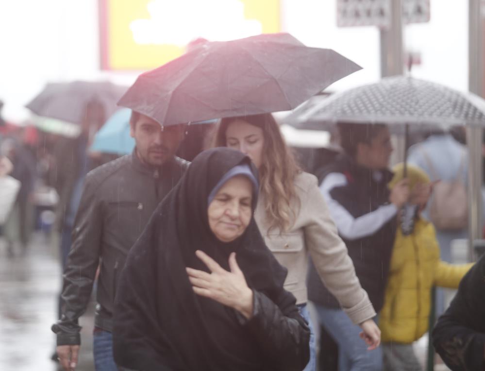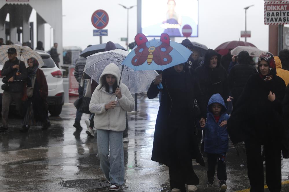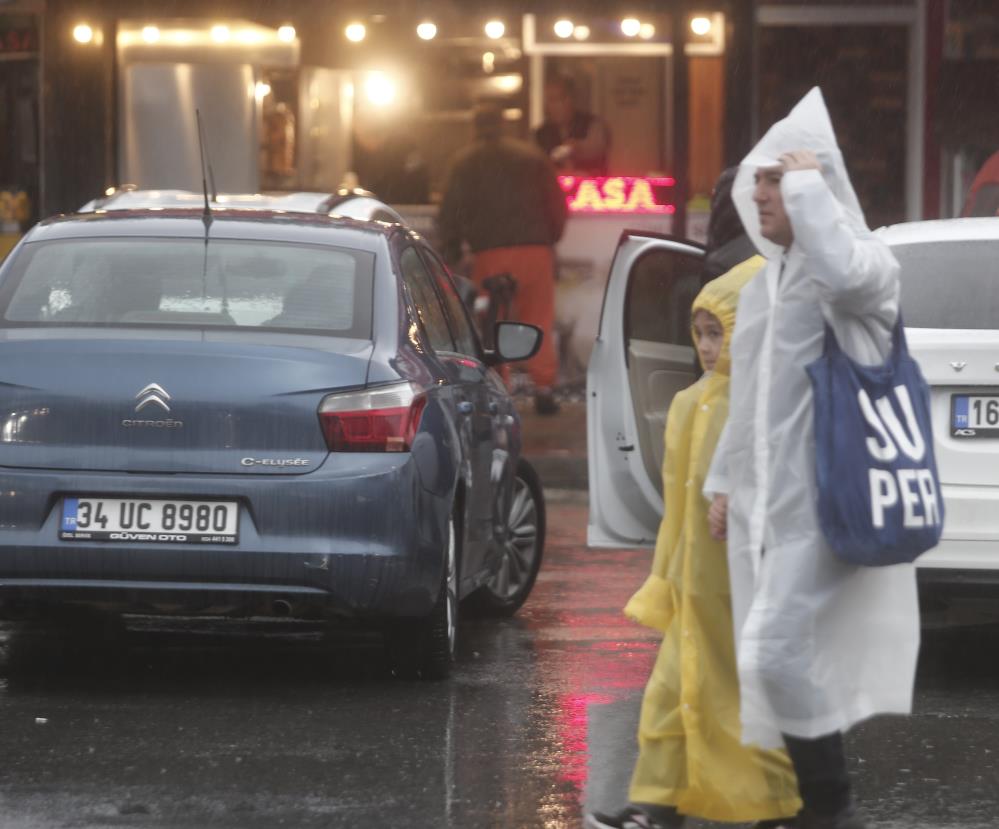 Zaman zaman şiddetli esen rüzgar şemsiyeleri uçururken bazı vatandaşların naylon yağmurluk giyerek gezdiği görüldü.