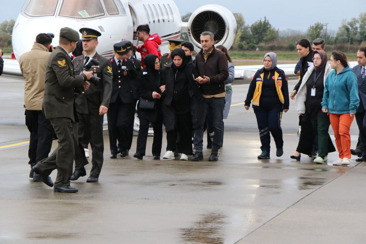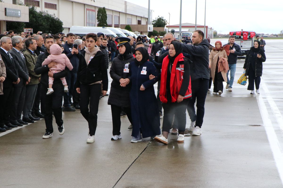 Şehidin babası İsa, annesi Gülay ve oğlu Emirhan Altıok ile kız kardeşleri Gamze Süngerli ile Sevdegül Altıok Ankara’dan aynı uçakla, 9 aylık hamile eşi Seda Altıok ise Sağlık Bakanlığı’na ait ambulans uçakla geldi.