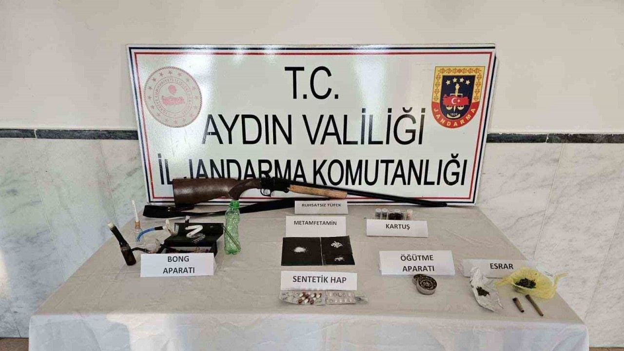 Aydın genelinde uyuşturucu ile mücadele kapsamında yürütülen çalışmalar aralıksız devam ediyor. Edinilen bilgiye göre jandarma ekipleri Kuyucak, Nazilli ve Buharkent ilçelerinde belirlenen adreslere eş zamanlı operasyon düzenlendi. Yapılan aramalarda metamfetamin, sentetik hap, kubar esrar, uyuşturucu kullanma aparatları ve 1 adet ruhsatsız av tüfeği ele geçirildi. Şüpheliler G.K., Y.G. ve T.Ç. gözaltına alınırken, ruhsatsız silah bulunduran bir şüpheliye de idari para cezası uygulandı. Gözaltına alınan 3 şüpheli hakkında adli işlem başlatıldı.