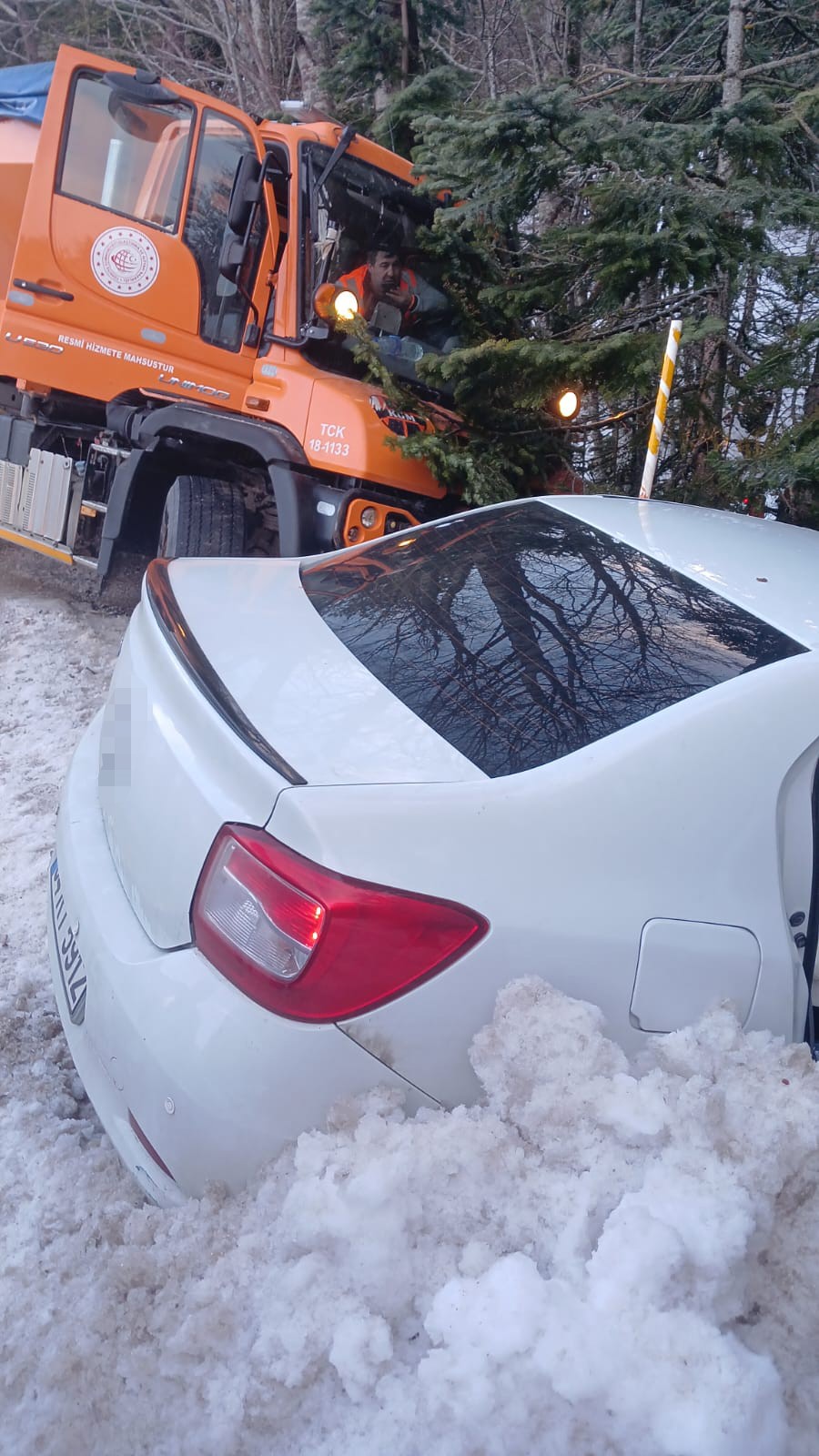 Kar temizleme çalışması yapan kar küreme aracı, sürücüsünün direksiyon hakimiyetini kaybetmesi sonucu seyir halindeki otomobille çarpıştı.
