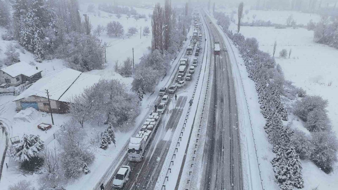 Uşak'ta etkili olan kar yağışı nedeniyle Uşak-Ankara karayolu Dumlupınar Rampaları mevkiinde yol yaklaşık 3 saat boyunca trafiğe kapandı. Rampalarda kar kalınlığı 15 santimetreye ulaşırken, yolda kalan tır ve araçlar nedeniyle kilometrelerce araç kuyruğu oluştu.