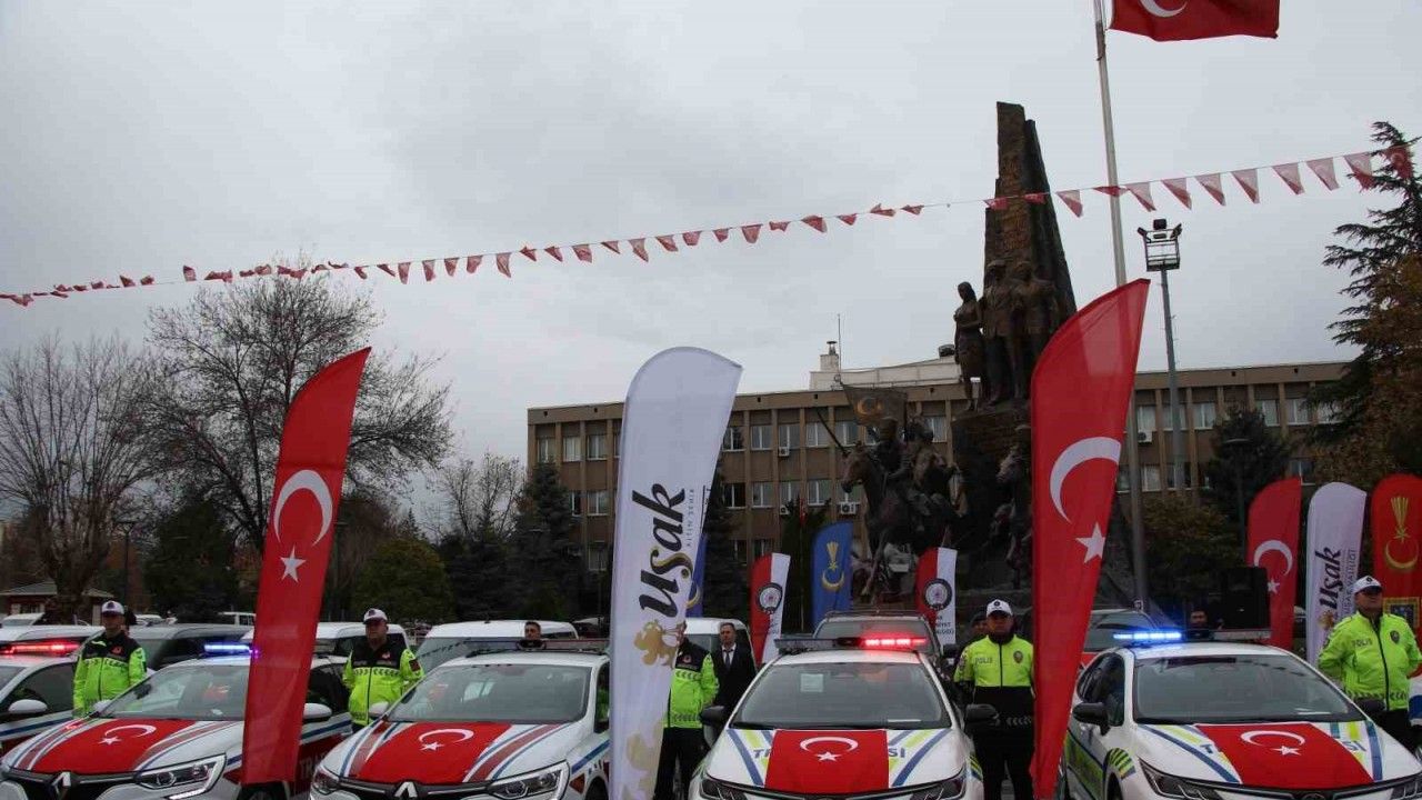 Cumhurbaşkanlığı tarafından emniyet ve jandarma teşkilatlarını güçlendirmek amacıyla Uşak’ta gönderilen 47 yeni araç törenle hizmete alındı.
