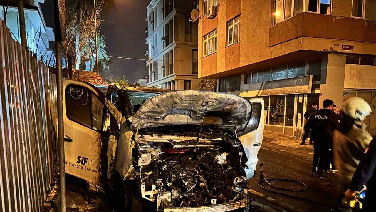Üsküdar’da park halinde bulunan hafif ticari araç alev alev yandı. O anlar kamaraya yansırken, yangın itfaiye ekiplerince söndürüldü.