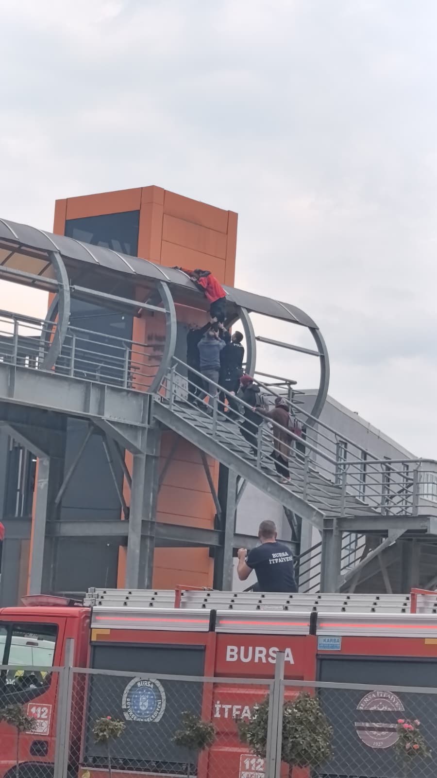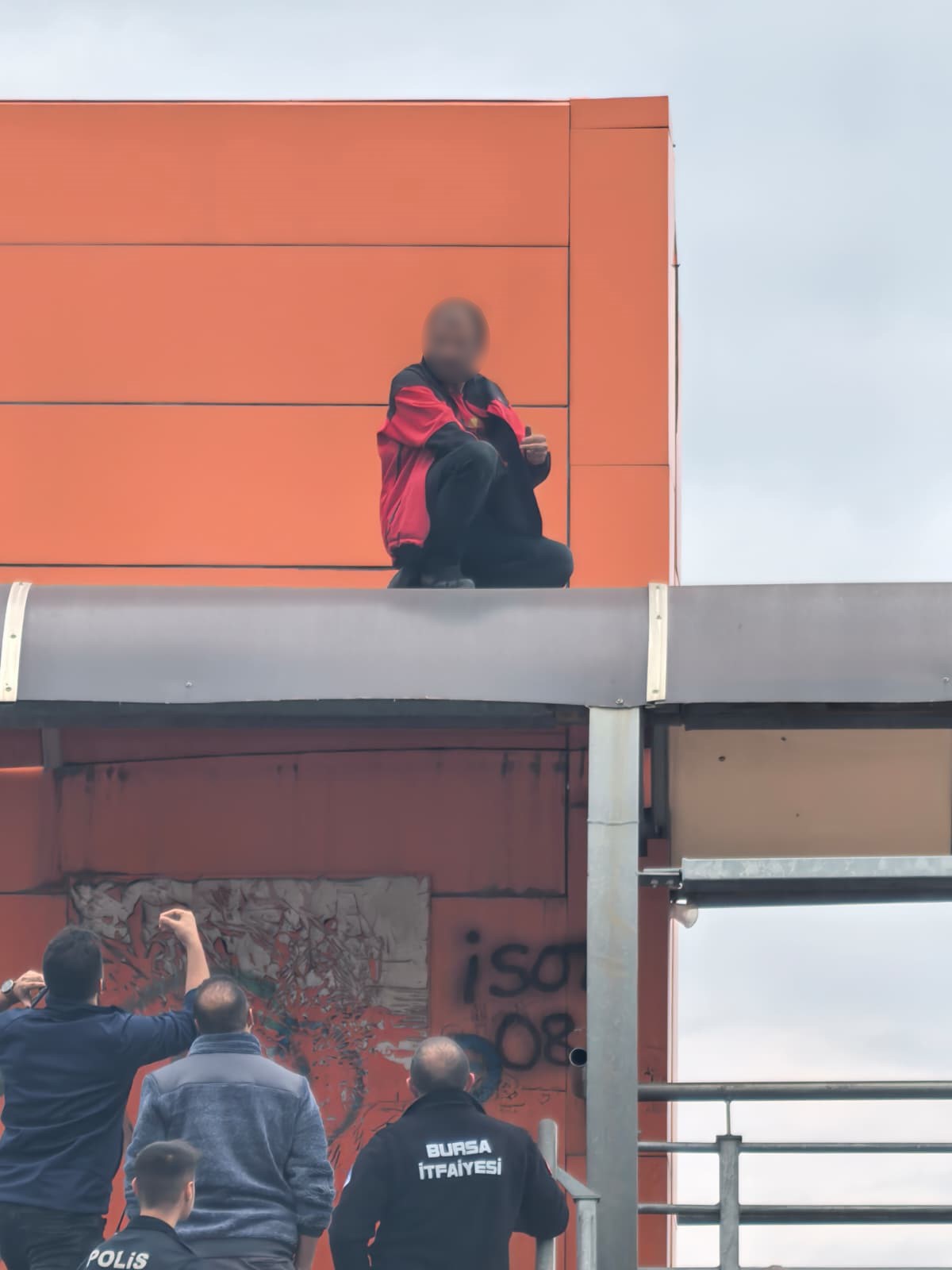 Edinilen bilgiye göre, olay İnegöl-Alanyurt yolu üst geçitte meydana geldi. Eşinin ayrılmak istediği iddia edilen Metin A. (42) bunalıma girdi. Şahıs üst geçit çatısına çıkıp kendini sarkıtarak intihar girişiminde bulundu. Olay yerine 112, polis ve itfaiye arama kurtarma ekipleri sevk edildi. Polis ekipleri şahsı yarım saat süren ikna çalışması sonucu çıktığı yerden indirdi. İkna çalışmalarını meraklı gözlerle izleyen öğrenciler, üst geçitten adamın indirilmesini sağlayan polis ekiplerini alkışladılar.