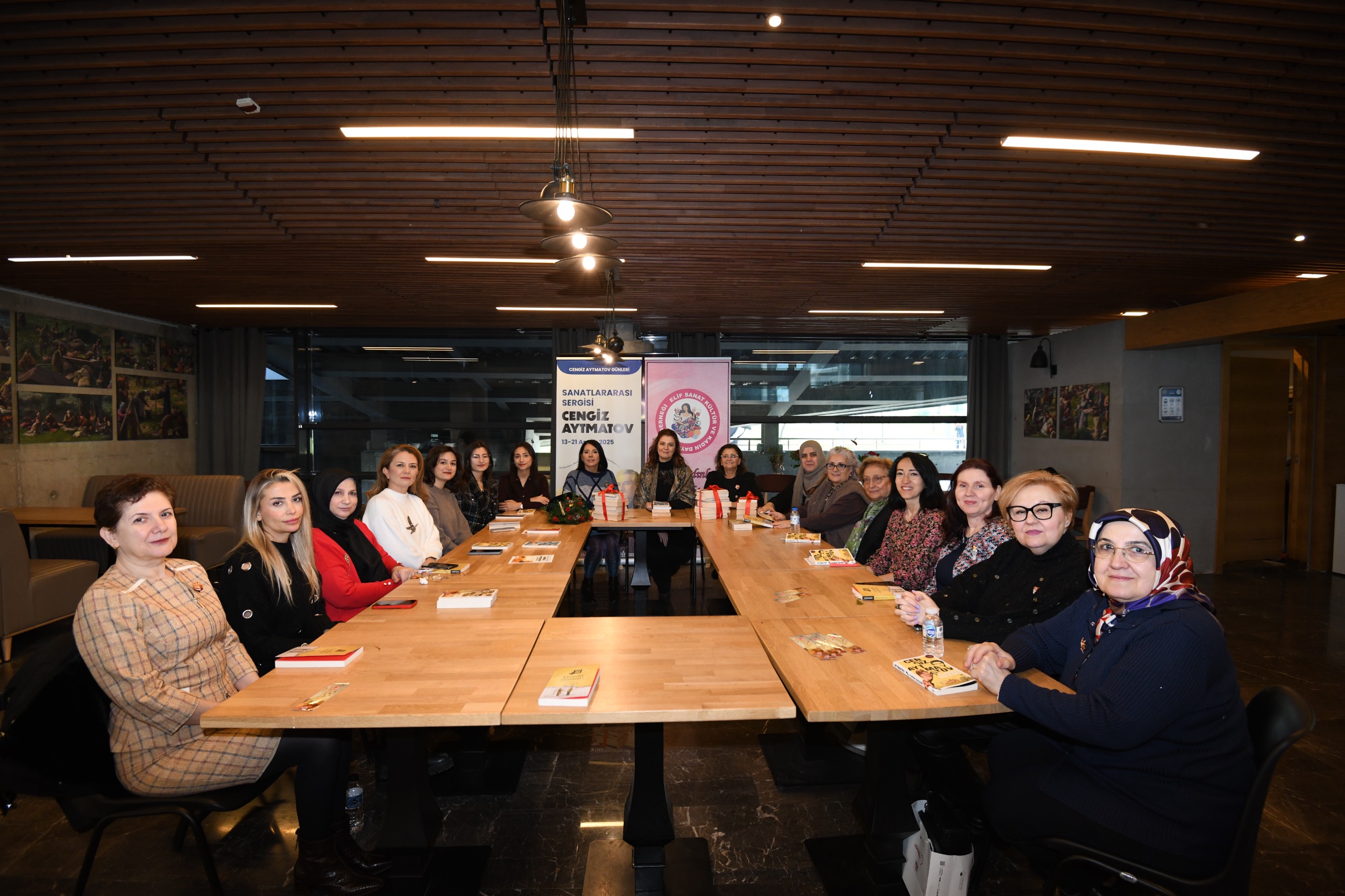 Cengiz Aytmatov’un Türk dünyası için edebiyatta önemli bir yere sahip olduğuna işaret eden Uludağ Üniversitesi Fen Edebiyat Fakültesi Türk Dili ve Edebiyatı Bölümü Öğretim Görevlisi Ayşe Energin, “Sanatlararası Sergisi’nde Cengiz Aytmatov dedik, bozkırdan dünyaya uzanan el, bozkırın sesi, bozkırın bilgesi dedik. Tam da buradan hareketle sergimizin kapanışını bir kolektif okumayla gerçekleştirdik. Burada kitapsever dostlarımızla birlikte Aytmatov’un ‘Elveda Gülsarı’ adlı kitabını inceledik.” diye konuştu.