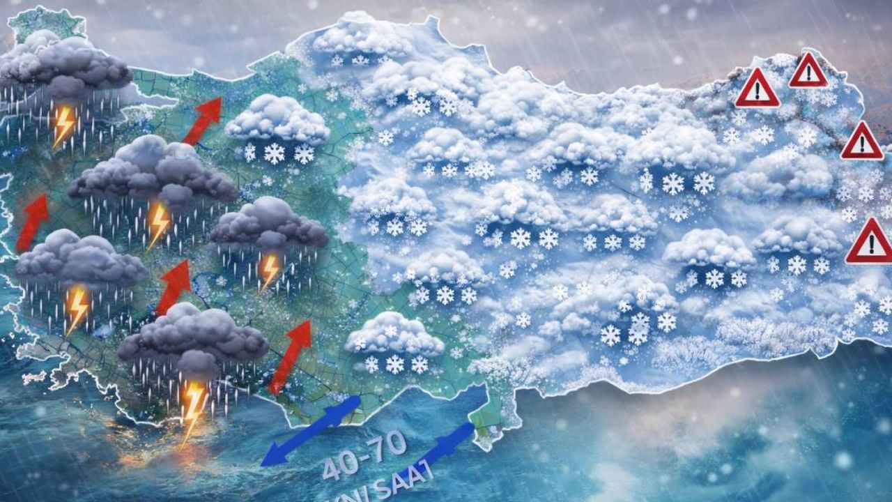 Kıyılarda yağmur ve sağanak yağışlı, batı bölgelerde yağmur ve karla karışık yağmur, yağış alan diğer yerlerde kar şeklinde görülecek olan yağışların; Marmara’nın batısı, Kıyı Ege, Antalya, Osmaniye ve Hatay'da kuvvetli yağış, Güneydoğu Anadolu ile Sivas, Kayseri, Yozgat, Nevşehir, Elazığ, Tunceli, Bitlis, Bingöl, Malatya ve Kahramanmaraş çevrelerinde kuvvetli kar yağışı olması bekleniyor.