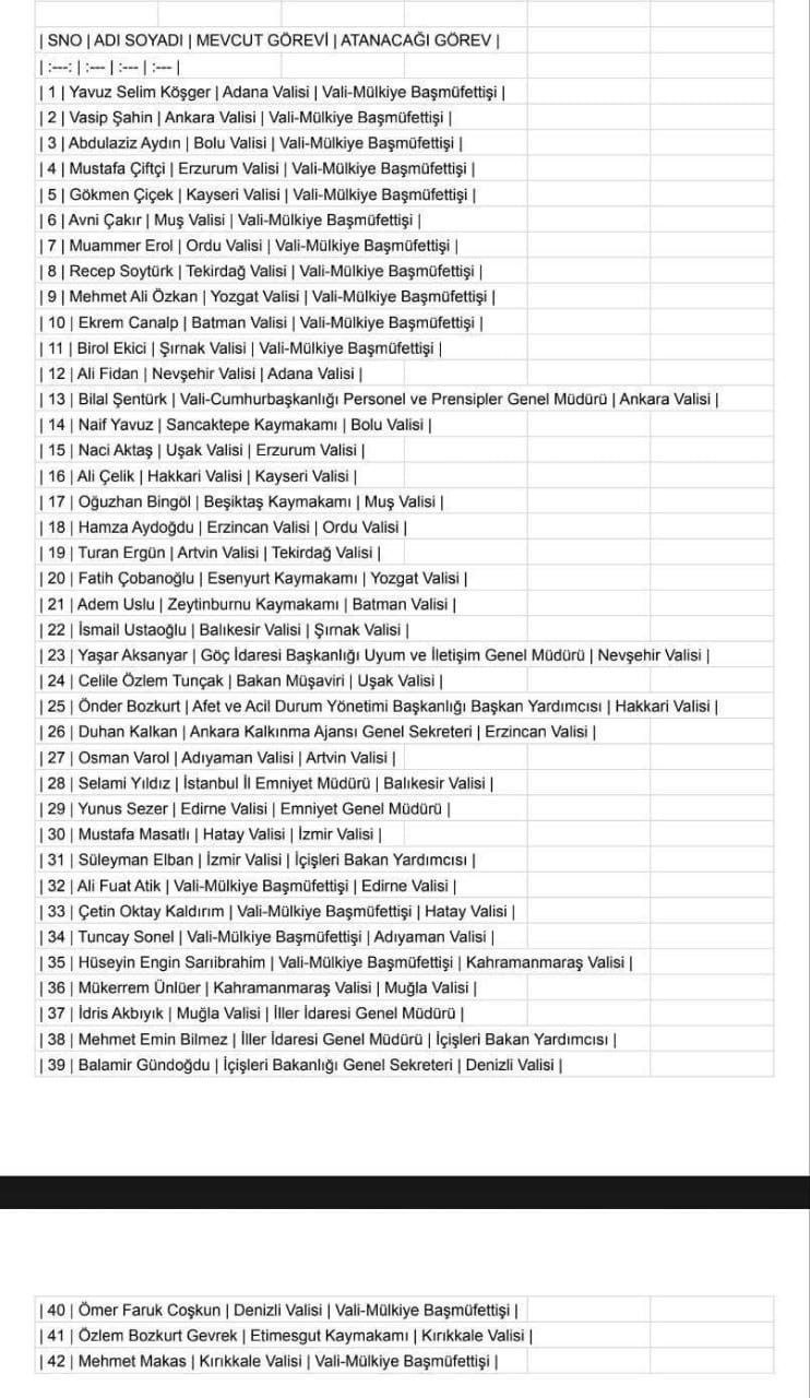 Hesabın iddiasına göre, Ankara, Adana, Bolu, Erzurum, Kayseri, Muş, Ordu, Tekirdağ, Yozgat, Batman ve Şırnak valilerinin merkeze çekileceği, bazı kaymakam ve bürokratların ise yeni illere atanacağı öne sürüldü. Kulislere göre, yaklaşık 40 atamanın yer aldığı bir liste hazır durumda.