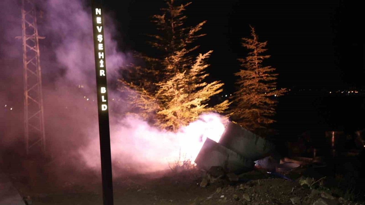 Nevşehir’de ucu açık bırakılan elektrik kablosu yağmurun etkisiyle kısa devre yaparak alev aldı.