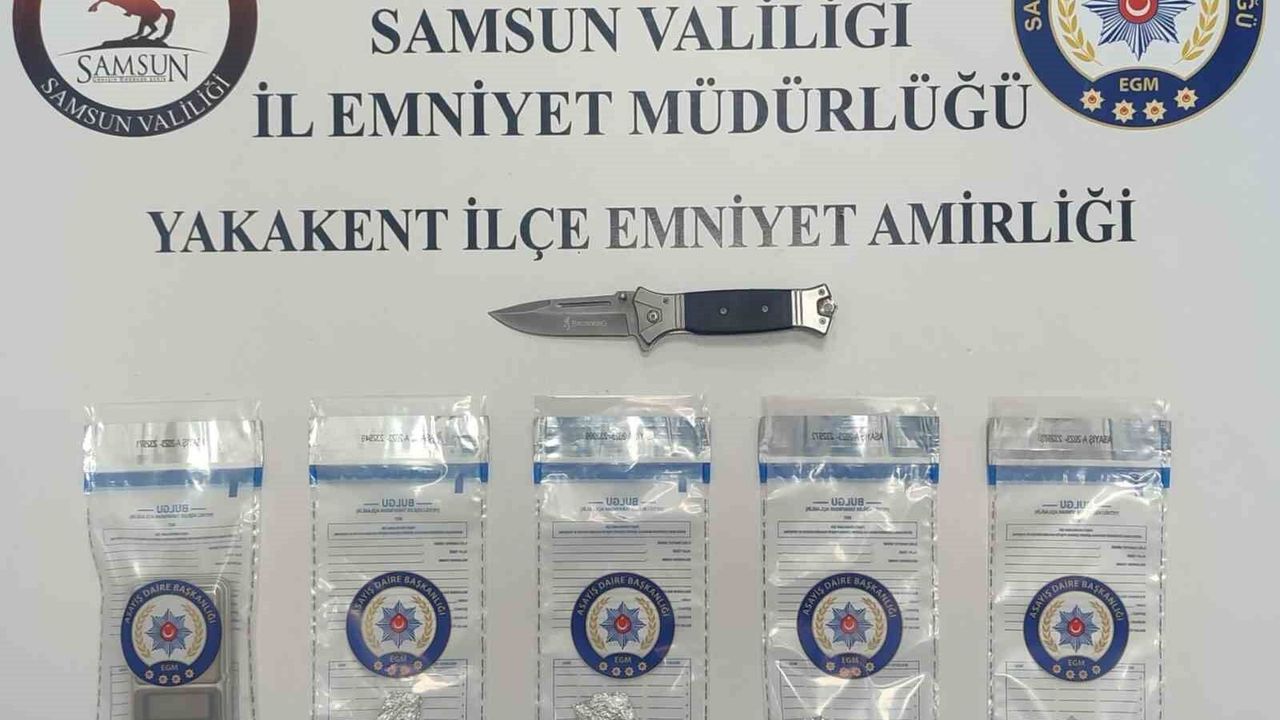 Samsun'un Yakakent ilçesinde polis ekiplerince durdurulan araçta yapılan aramada uyuşturucu madde ve hassas terazi ele geçirilirken, 2 kişi gözaltına alındı.
