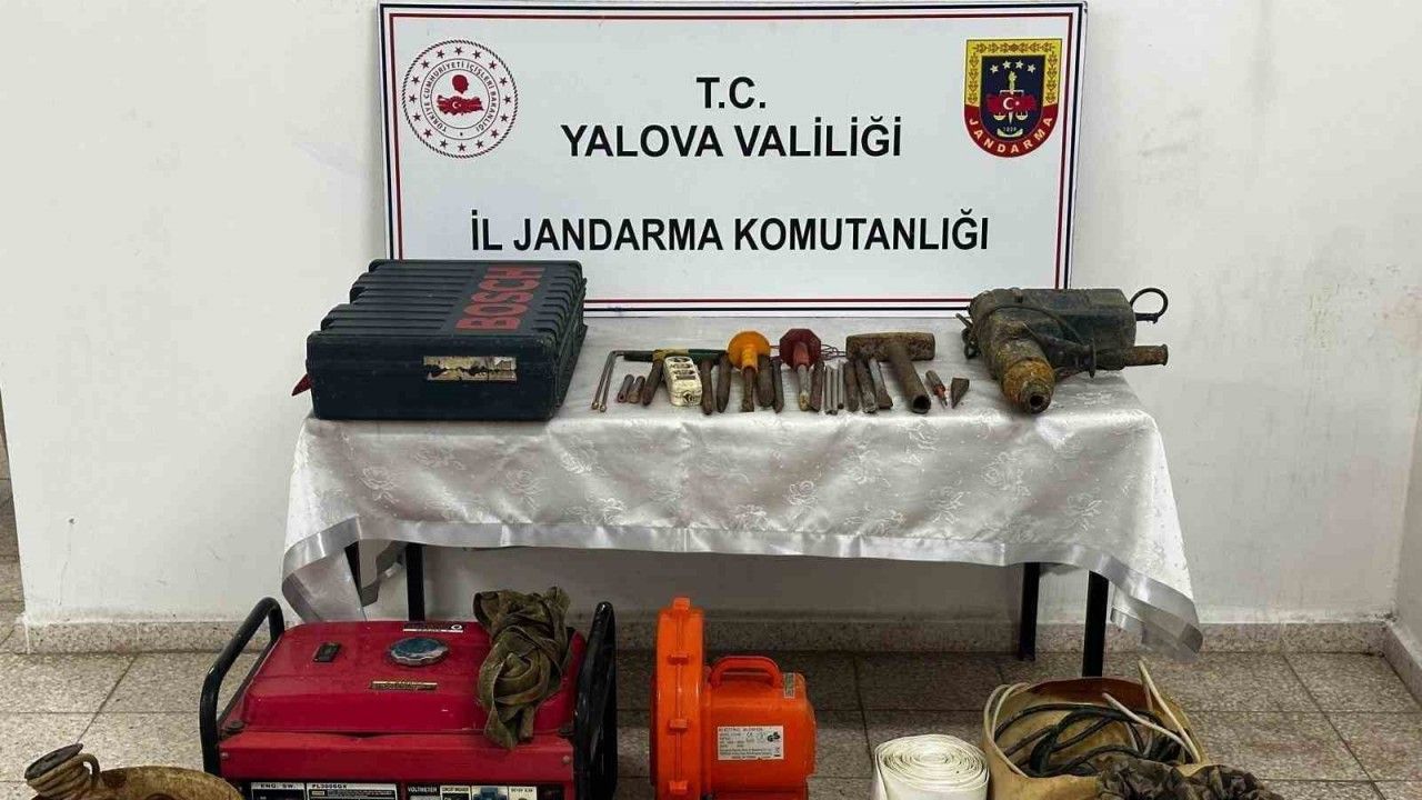 Alınan bilgiye göre, Yalova İl Jandarma Komutanlığı ekipleri, gece saatlerinde Çınarcık ilçesinde ormanlık alanda kaçak kazı yapan 3 şahsı suçüstü yakaladı. Şüphelilerin kaçak kazı yaptığı yerde yapılan aramada jeneratör, elektrikli hilti, havalandırma fanı, 24 adet çeşitli kazı malzemesi ele geçirildi.