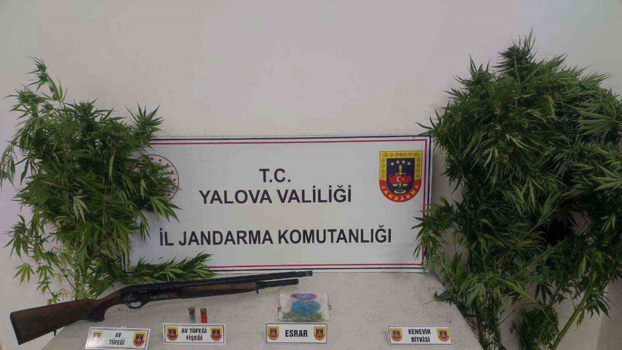Yalova İl Jandarma Komutanlığı ekipleri, ormanlık alanda yasa dışı yetiştirilen hint kenevirinin kubar esrar haline getirilerek satılacağı bilgisine ulaştı. Alınan bilginin değerlendirilmesi üzerine Narkotik Suçlarla Mücadele Şube Müdürlüğü ile Altınova İlçe Jandarma Komutanlığı ekipleri, D.Ö. ve G.Ş.’nin ikametlerinde arama gerçekleştirdi. Aramada, 1 kilo 473 gram kubar esrar, 4 kök hint keneviri bitkisi, ruhsatsız tabanca, 2 adet ruhsatsız av tüfeği, 221 adet 9 mm. tabanca fişeği, 19 adet av tüfeği fişeği ele geçirildi.