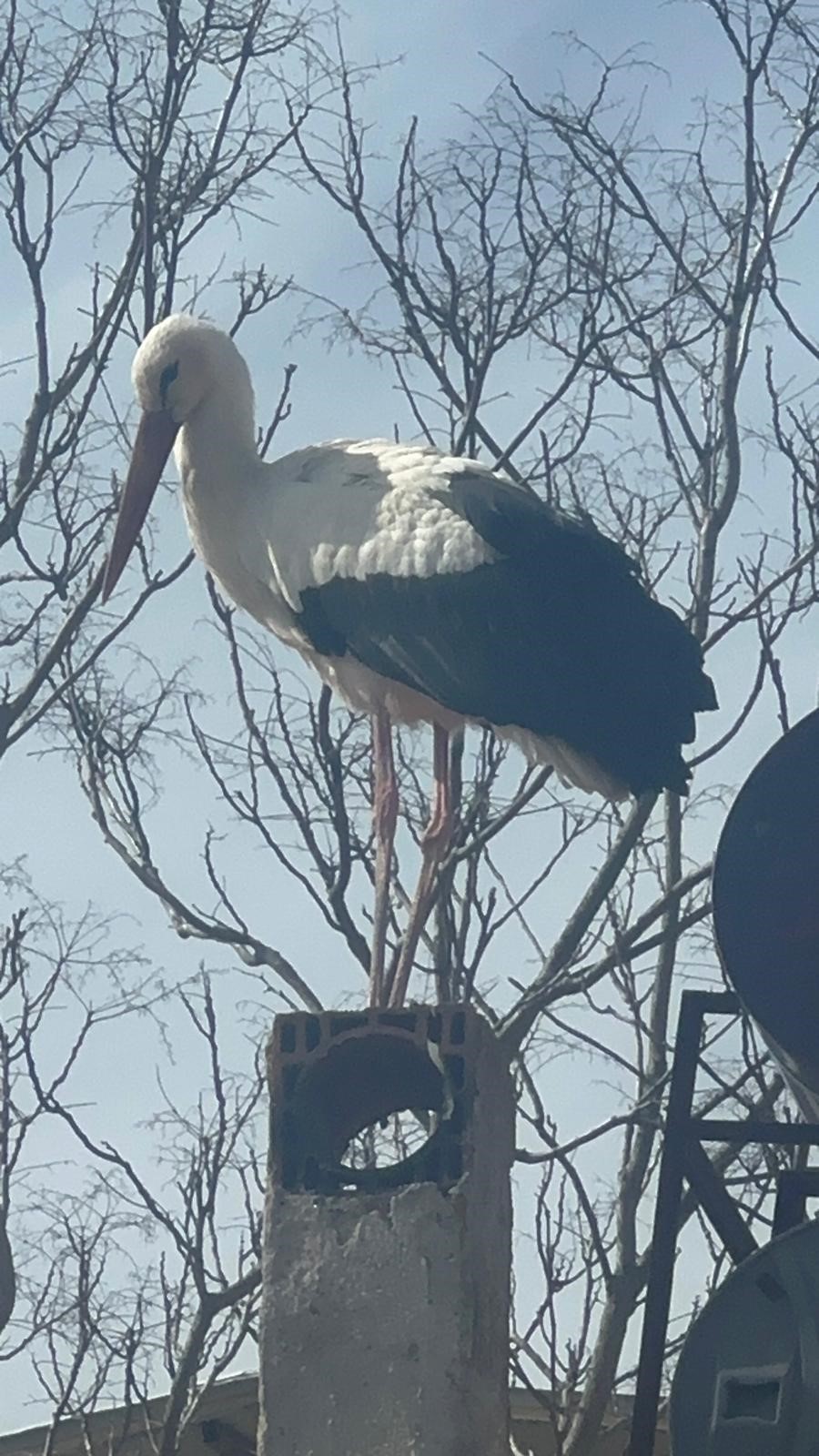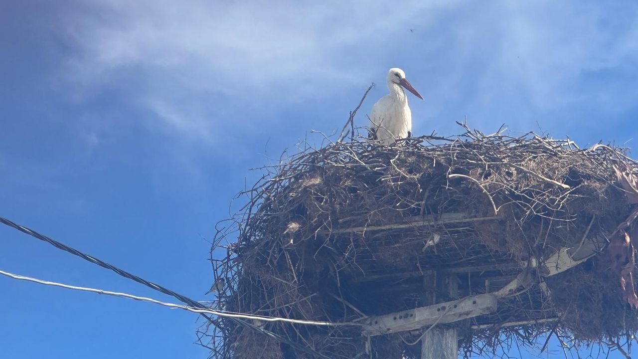 Yaren leyleğin eşi bu sabah yuvaya geldi. Hatta Leylek köyünün ilk misafiri de bu leylek oldu.