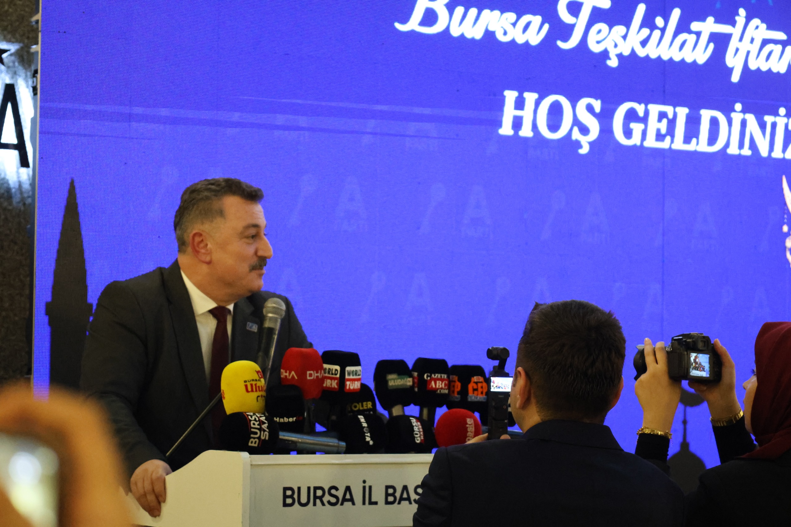 Oruç açıldıktan sonra gürültüler arasında gecenin mimarı İl Başkanı Fikret Aslan kürsüye çıktı ve Bursa’da üçüncü parti haline geldikleri iddiasını dile getirdi. Başkan Aslan, kentin sorunlarına değindi, 2025 yılında Ankara’ya vergi geliri olarak 40 milyar gönderildiği halde bu şehrin başkentten gereken desteği alamadığını söyledi.