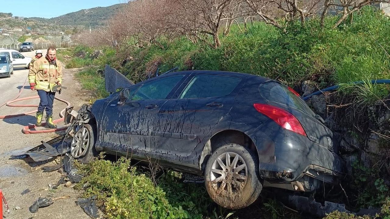 Hatay'da bahçe duvarına çarparak hurdaya dönen otomobilin sürücüsü yaralandı.