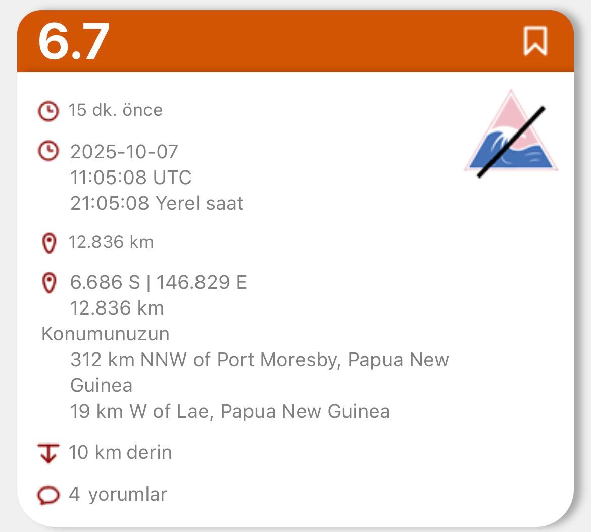 Avusturalya'nın kuzeyinde bulunan dünyanın en büyük ikinci adası olan Yeni Gine'de 6.7 büyüklüğünde deprem meydana geldi.