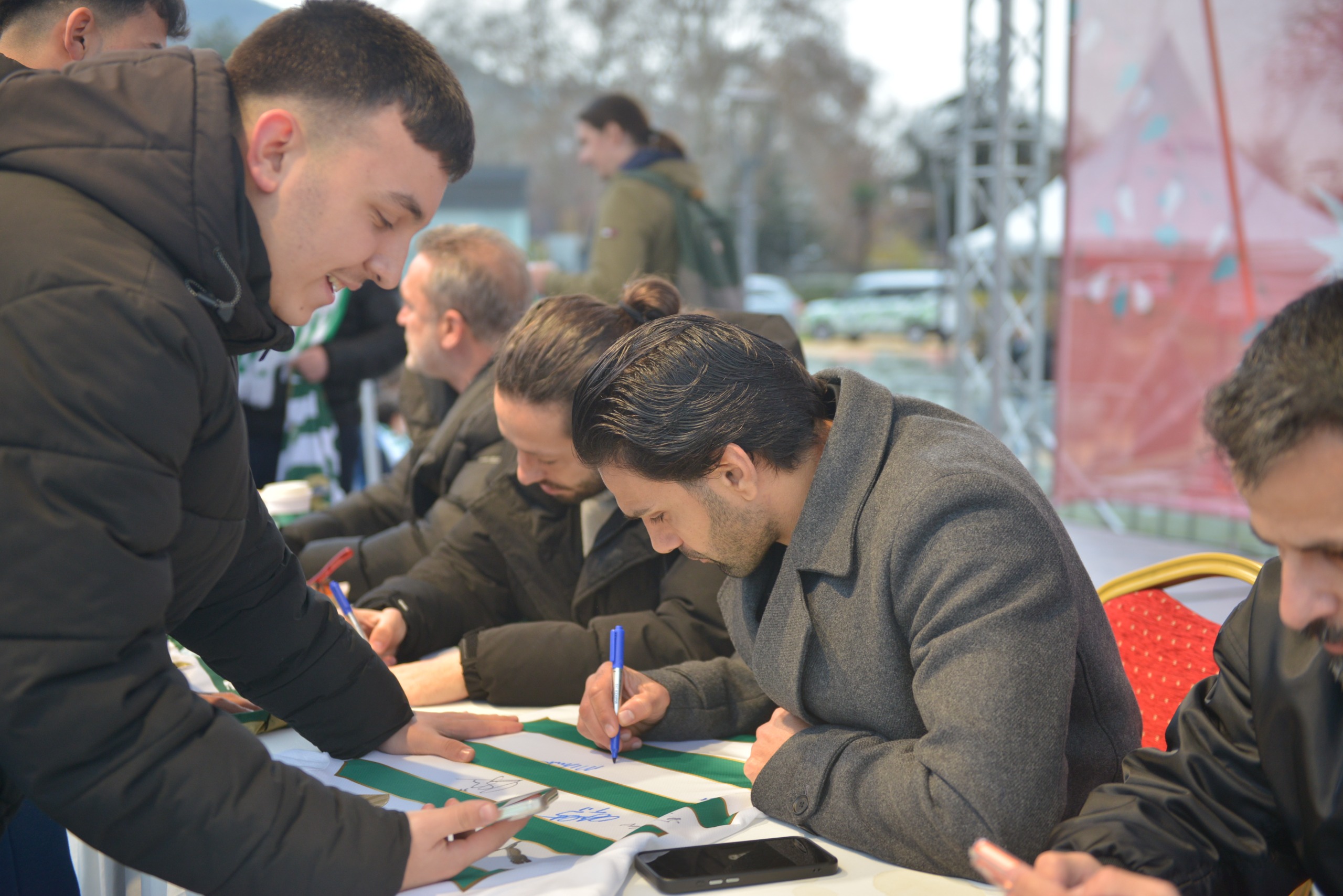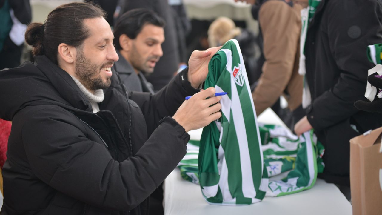 Öte yandan Bursaspor Başkanı Enes Çelik, Teknik Direktör Tahsin Tam ve futbolcular Taha Batuhan Yayıkçı, Muhammed Demir ve İlhan Depe de Yeni Yıl Meydanı’nda düzenlenen imza gününde taraftarlarla bir araya geldi.