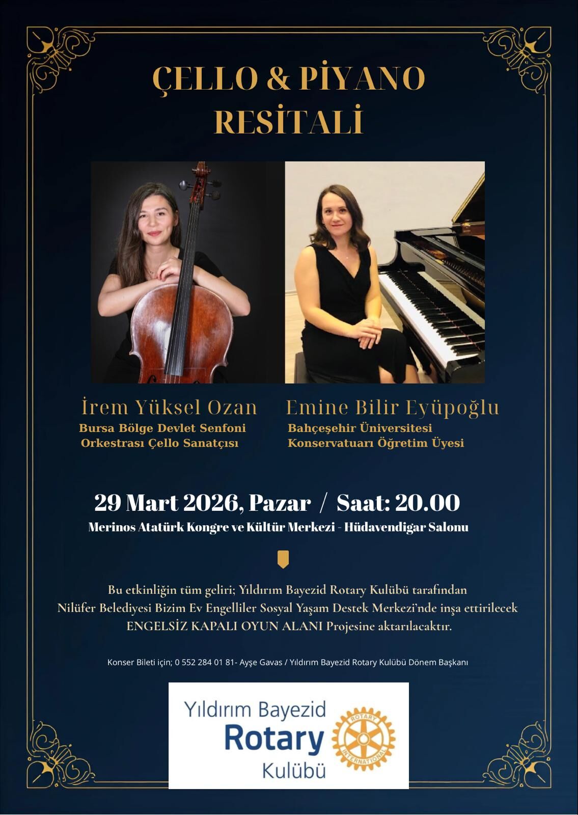 Dönem Başkanı Ayşe Gavas, organizasyonla ilgili olarak Bursalı müzikseverlere mesaj verdi ve “Bilet alarak hem gönüllü sanatçılardan şahane bir müzik ziyafeti dinleyip hem de engelli evlatların sosyal yaşama katılımına omuz verebilirsiniz. dedi. Üstelik bilet almak suretiyle projeye destek verecek ancak programa katılamayacak gönüllülere de “askıda bilet” uygulamasıyla koltuklarında ÇYDD bursiyeri ve AIESEC Bursa üyesi gençlerin resitali izleyebileceğini söyledi.