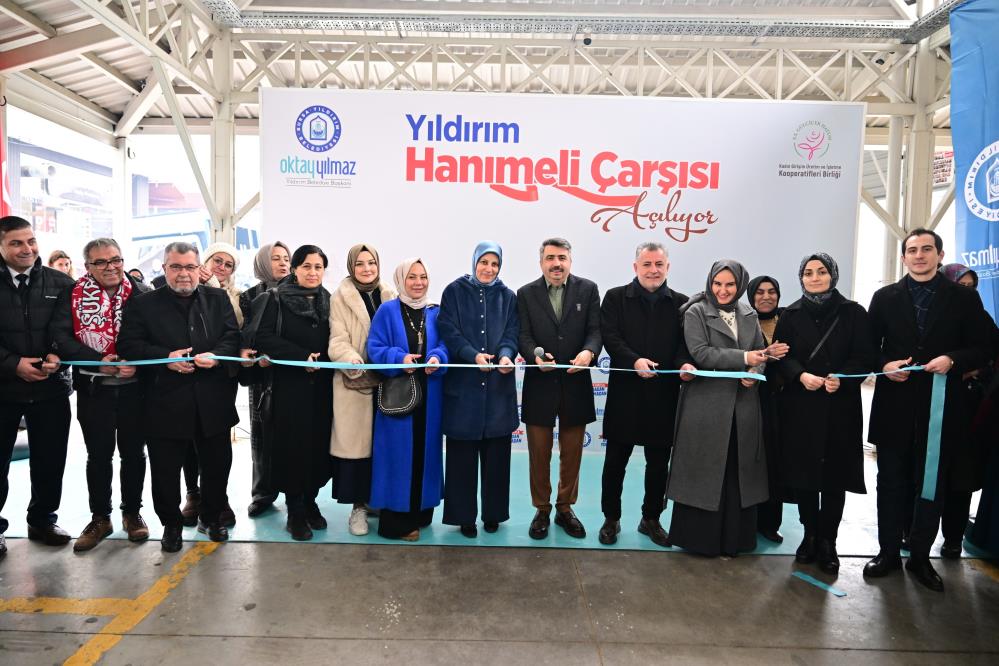 Hanımeli Çarşısı'nın açılışı, AK Parti Yıldırım İlçe Başkanı İrfan Akkaya'nın katılımıyla Yıldırım Belediye Başkanı Oktay Yılmaz tarafından gerçekleştirildi. Açılışta konuşan Başkan Oktay Yılmaz, kadınların sosyal ve ekonomik hayatta daha güçlü yer almasını önemsediklerini vurgulayarak, "Yıldırım'da kadın emeğini destekleyen, üretimi ve girişimciliği teşvik eden projeleri bir bir hayata geçiriyoruz. Çünkü inanıyoruz ki, kadın güçlü olursa aile güçlü olur. Aile güçlü olursa toplum güçlü olur. Yıldırım Hanımeli Çarşısı ile üreten kadınlarımız için önemli bir fırsat alanı oluşturduk. Kadınlarımızın el emeği ürünlerini daha geniş kitlelerle buluşturacak bu çarşı, aynı zamanda sürdürülebilir bir gelir kapısı olacak. Her ay düzenli olarak kurulacak Hanımeli Çarşısı, kadınlarımız arasında dayanışmayı ve iş birliğini güçlendirirken, yerel üretimin ve kadın emeğinin değer kazanmasına da katkı sağlayacak. Yıldırım Belediyesi olarak kadınların hayatın her alanında daha güçlü olması için çalışmaya devam edeceğiz" ifadelerini kullandı.