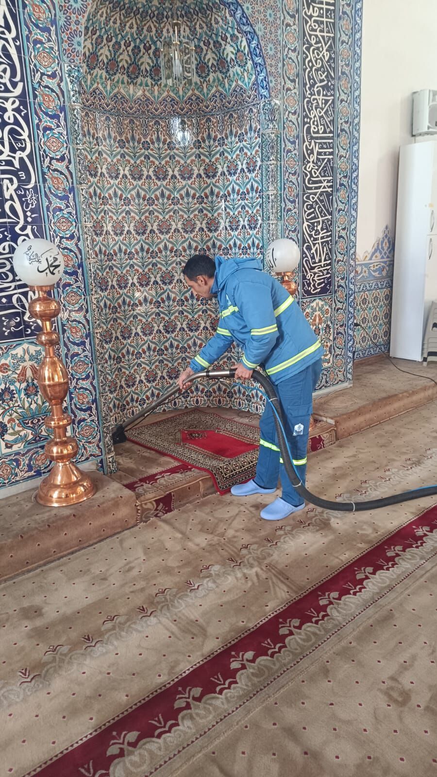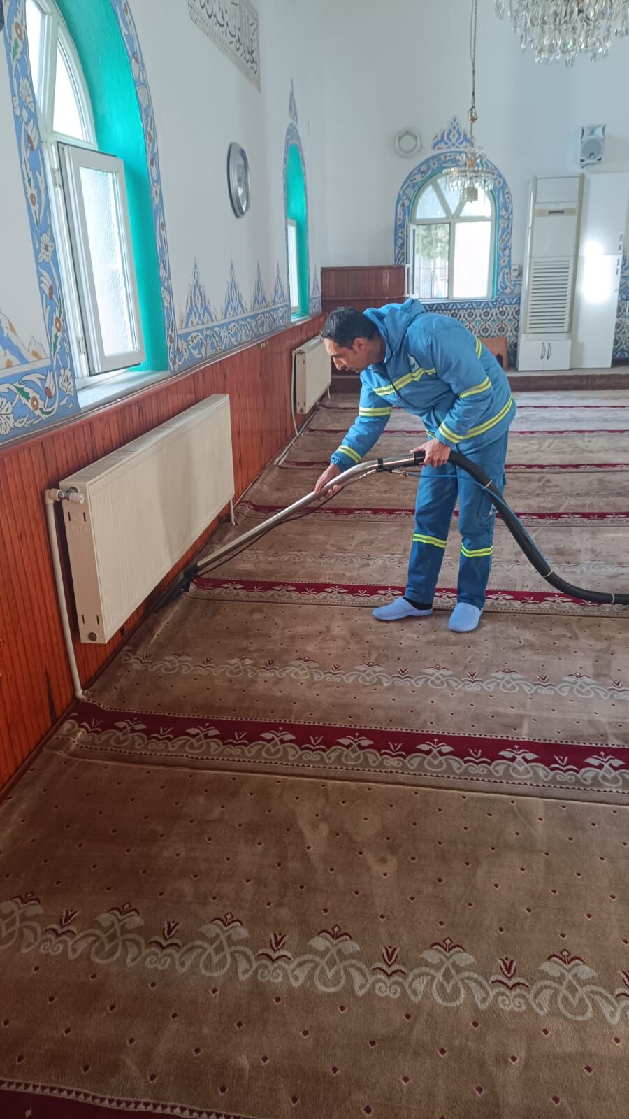 Temizlik İşleri Müdürlüğü ekipleri tarafından yürütülen çalışmalar kapsamında cami içleri ve çevrelerinin temizliği titizlikle yapılıyor. Belediye ekipleri, cami içlerinde genel temizlik yaparken cami bahçelerinde ise çöp toplama, süpürme ve yıkama işlemleri gerçekleştiriyor.