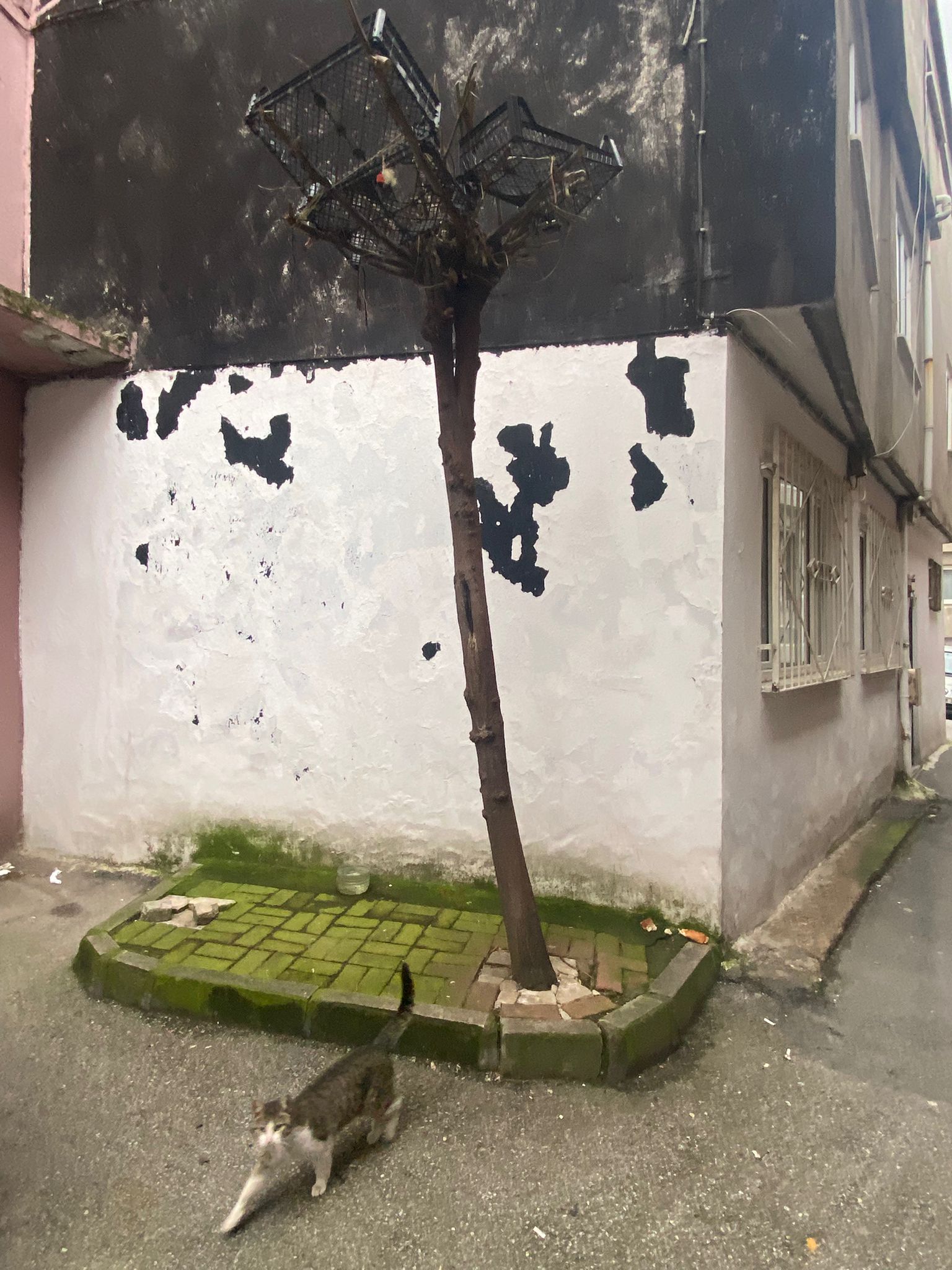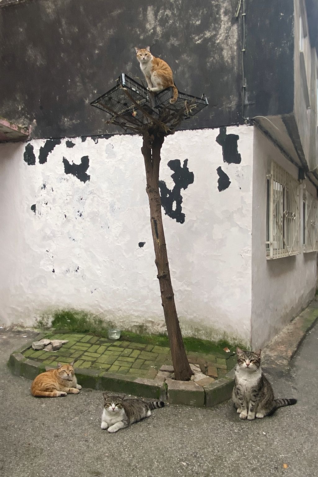 Ağacın gövdesi doğal bir tırmanma alanı haline getirilirken, üzerine geri dönüşüm malzemelerinden hazırlanan platformlar yerleştirildi. Ayrıca kedilerin dikkatini çeken sallanan toplar eklenerek eğlenceli bir oyun alanı oluşturuldu.