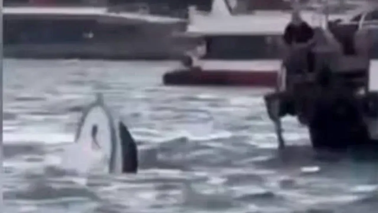 Denizden çıkarılan balıkçı ambulansla hastaneye kaldırıldı. Yaşananlar çevredekiler tarafından cep telefonuyla kaydedildi.